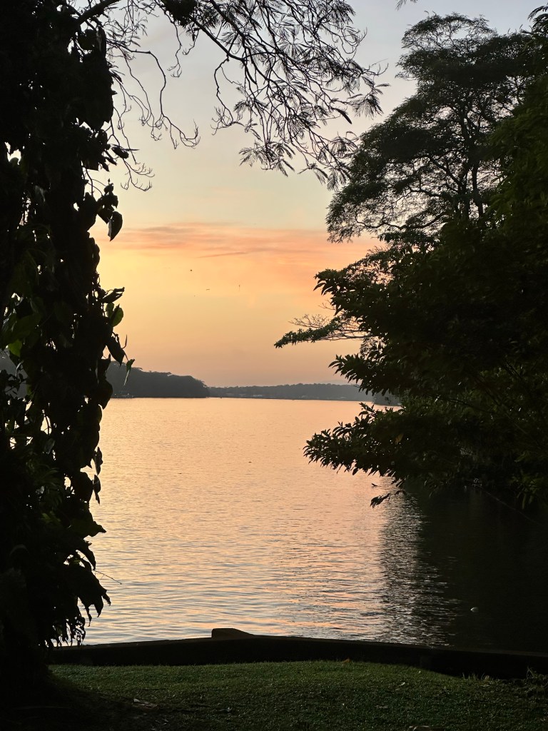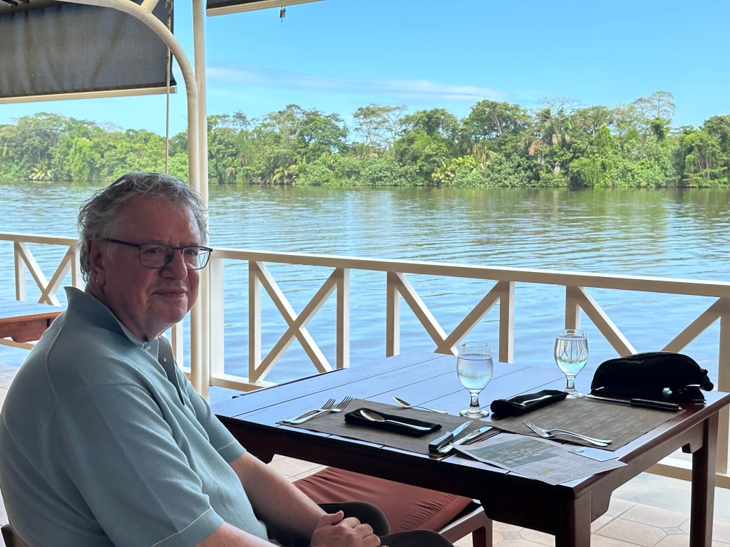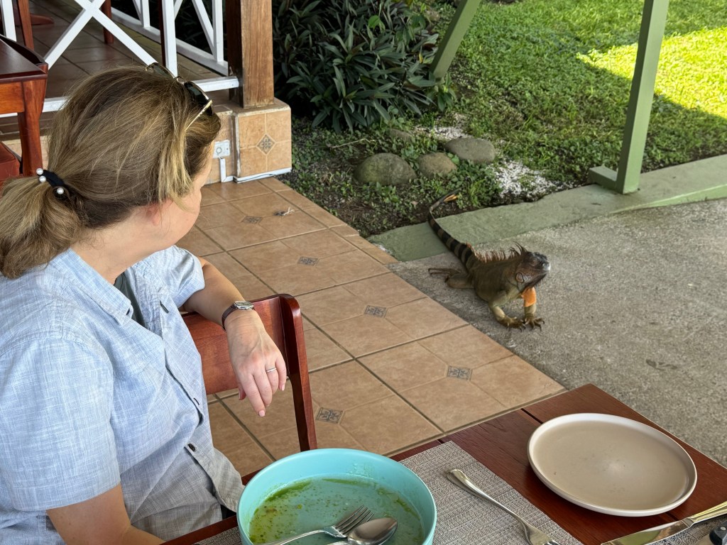 Lunch with a view and a visitor Sunrise from our room. Early wake up call from howler monkeys!