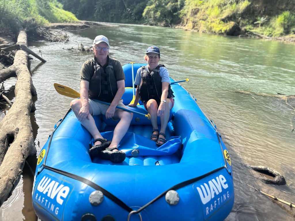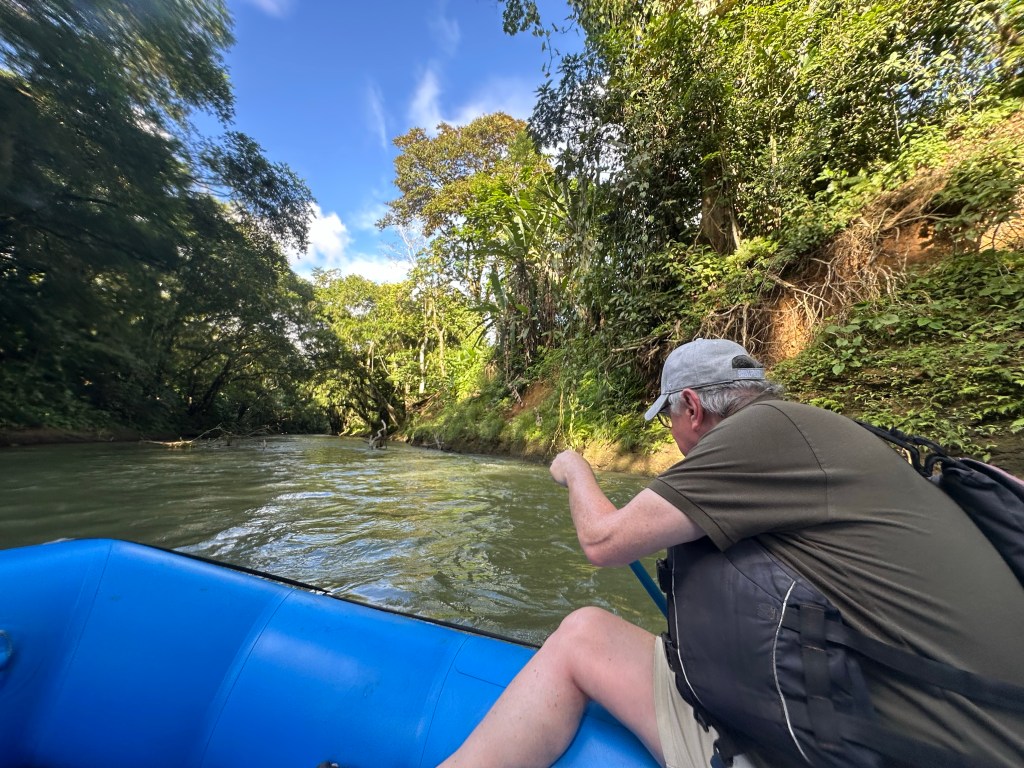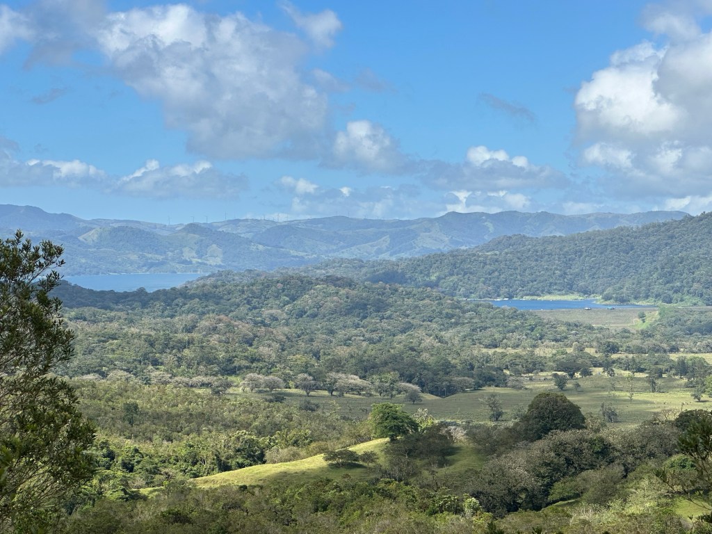 View from our hikeView from lunch !Lake Arenal, from our hikeWe also hiked through a rain forest, including five hanging bridgesRain forest; although we are here in the “dry season”, this is relativeWhite faced, or cappuccino, monkey Broad billed motmotRafting on a River Penas Blancas