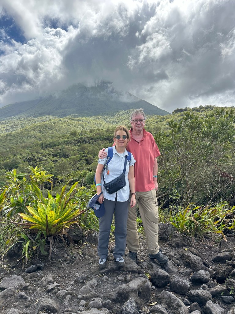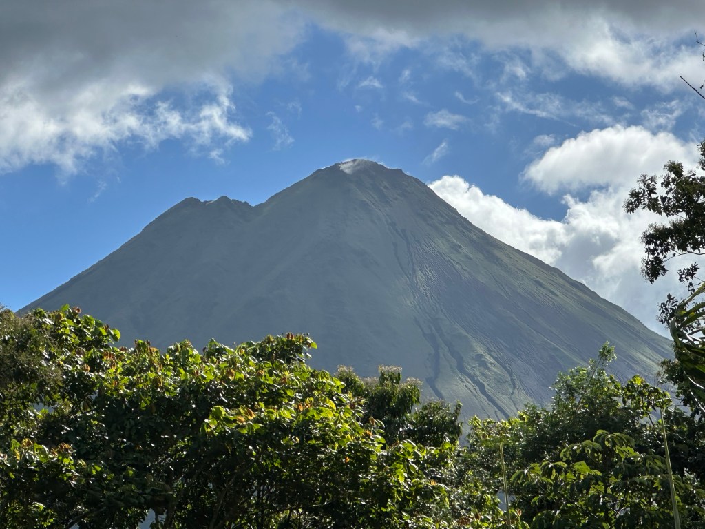 The volcano, being in a rain forest, is often entirely or partially covered in cloud. This was the case the day we hiked to the “viewing point”. We did, however, enjoy the hike in beautiful surroundings with plenty of wildlife. Our best view of the volcano was from lunch in our hotel after the hike !