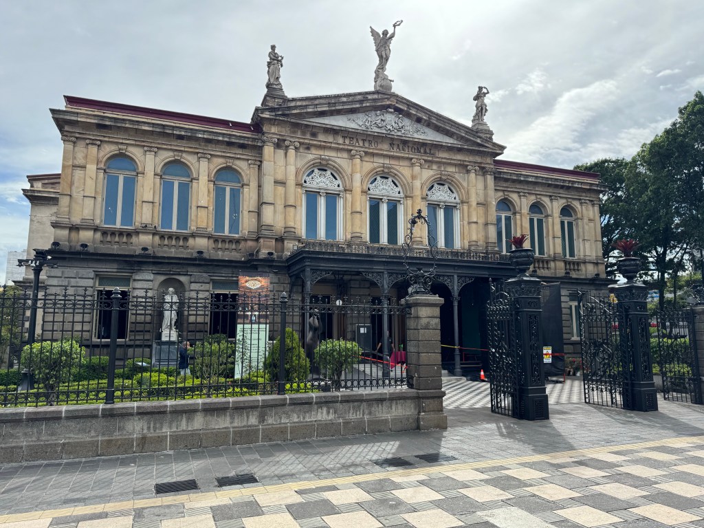 When the Costa Rican entrepreneurs became wealthy, principally from coffee related businesses, they sent their children to be educated in Europe. On their return they advocated for some of the customs and culture they had experienced in Europe. This included wanting a European style theatre where they could stage concerts and operas to display their wealth. The country raised taxes and designed a National Theatre which was built in pieces in Italy, including marble statues. The theatre opened with Faust performed by a French company in 1897. It remains the most significant building in the country. Following the Presidential election this February the new president (the current one is not permitted to stand for a second consecutive term) will host an inauguration party at the theatre in May.