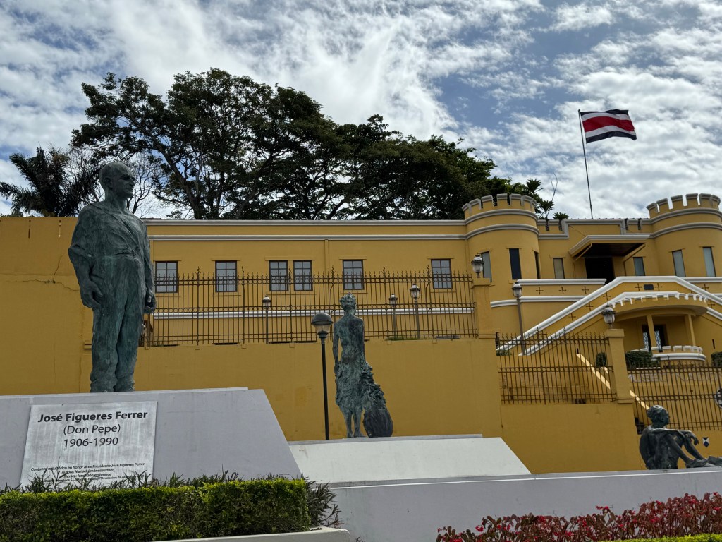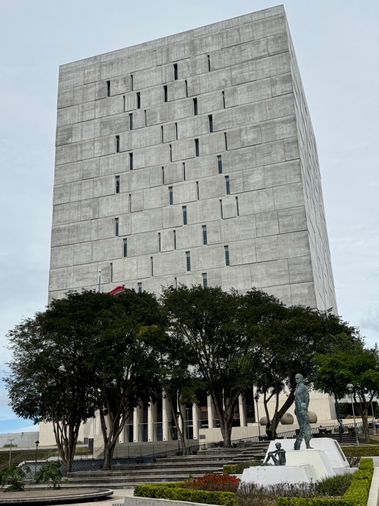 The National TheatreThe former headquarters of the army, a museum since the abolition of the army. The statues are of President Ferrer and two children depicting culture and education, the areas where the funds were redirectedThe parliament building- apparently it’s light and bright on the inside adding to the controversy of the designSan Jose’s first factory from the 1853 – it manufactured moonshine !