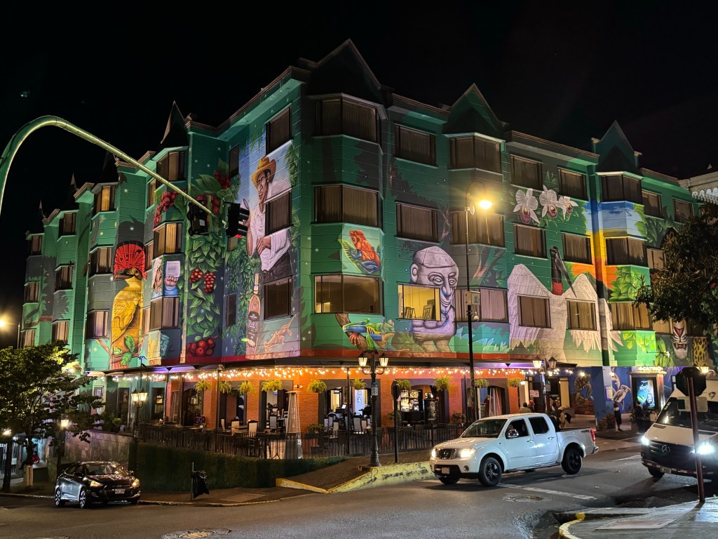 We spent three nights in San Jose which is unusual as most visitors stay there for the minimum amount of time, heading straight to the coast and National Parks. Our guidebook describes San Jose as “gritty” which we could understand. While there are certainly areas to be avoided we enjoyed our two days there, helped by the lack of other visitors as well as a walking tour on the first day with an excellent guide. In addition to explaining the sites she gave us a good insight into Costa Rica’s success, challenges and politics as well as an excellent recommendation for a restaurant.