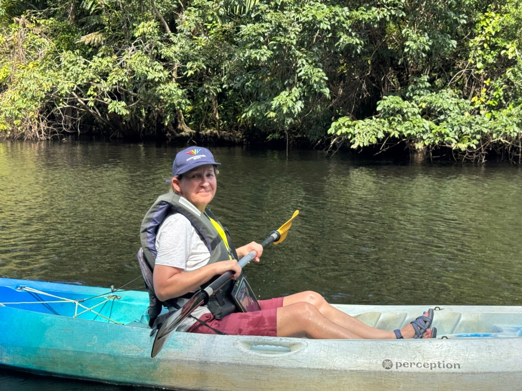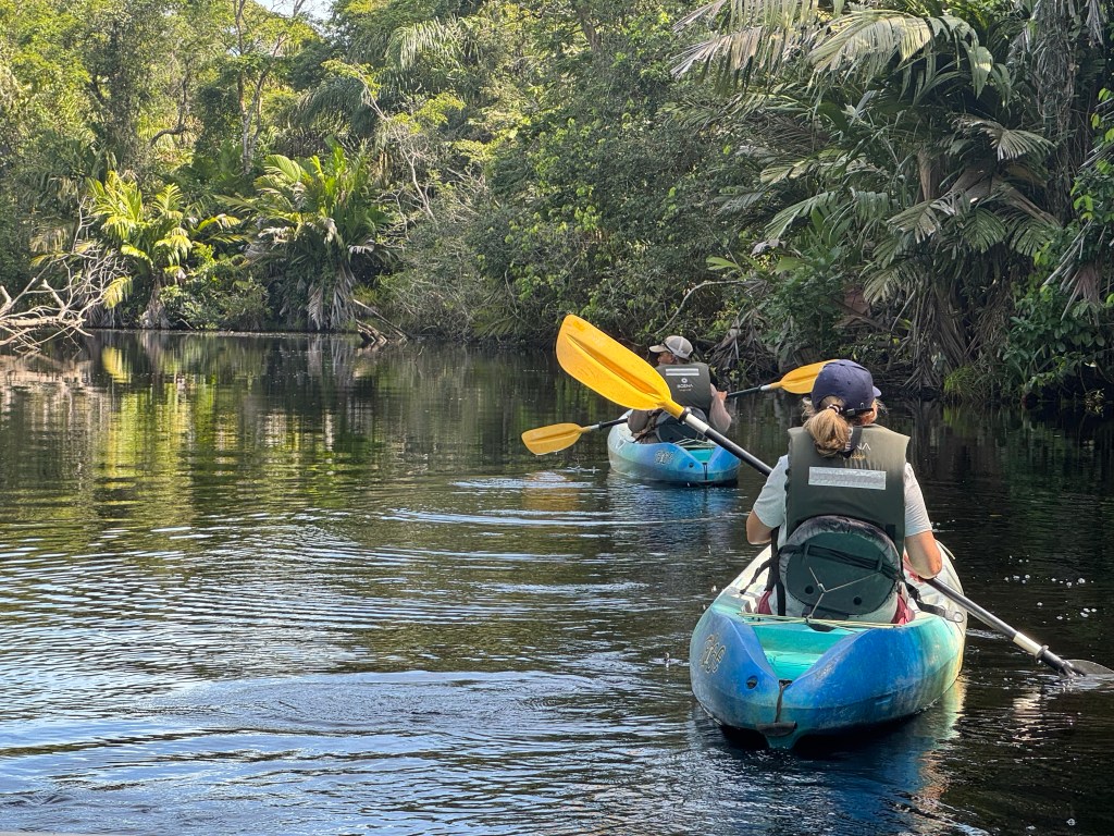 The area can only be reached by small aeroplane or boat. The first is 30 minutes from San Jose and the latter about 90 minutes from the nearest road. We arrived by the former and departed, after a three night stay, by the latter. During our visit we did a night walk, the best time to see frogs, a hike and a couple of boat trips. One of the boat trips had an option to do part of the trip by kayak. Our guides were well informed and extremely good at spotting well camouflaged animals. There was also plenty of wildlife around our lodge.