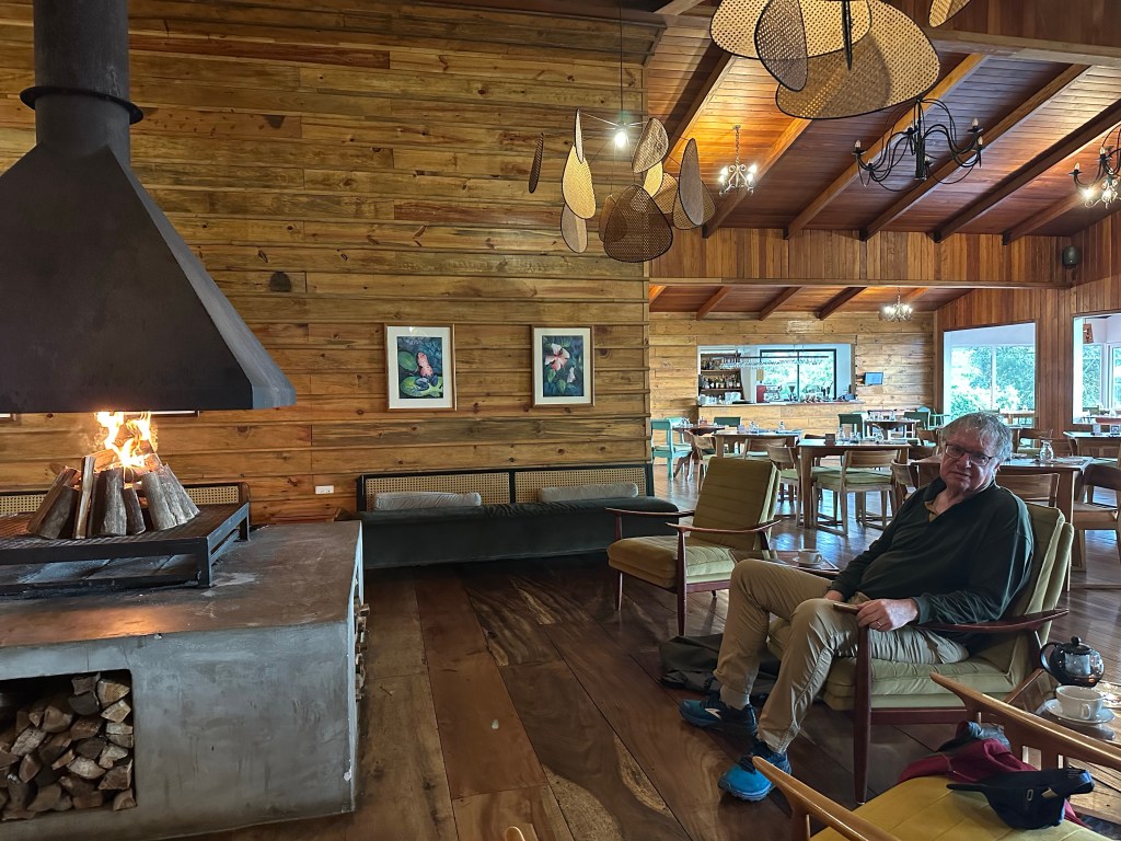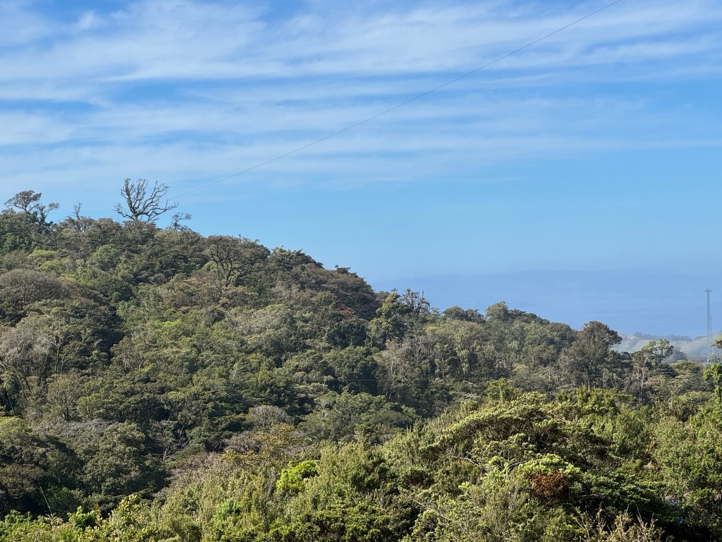 Our lodge is within sight of the Pacific Ocean (when there is a brief gap in the cloud) where it is currently 30 degrees, however the Cloud Forest is about 15 degrees but feels much colder due to the cloud and winds.