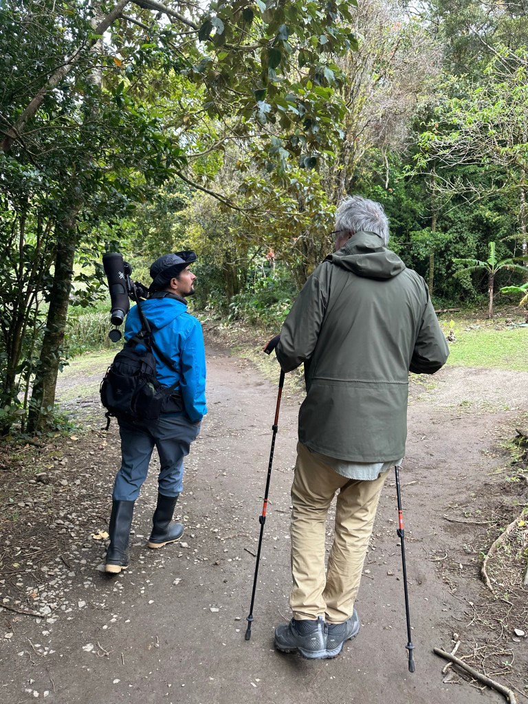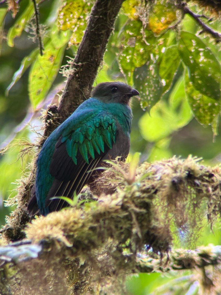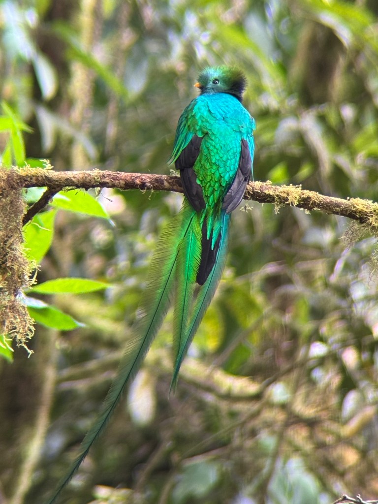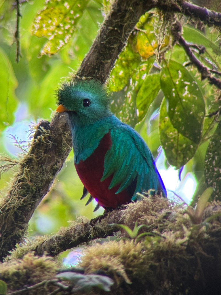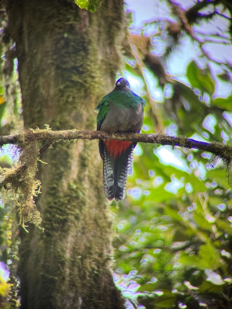 We booked two guided hikes on our first day in Monteverde. The first a specialist bird hike, with a 6am start. While we saw many species, the quetzal was elusive. We then saw a pair 15 minutes into the afternoon hike, with the same guide, not far from the trail.