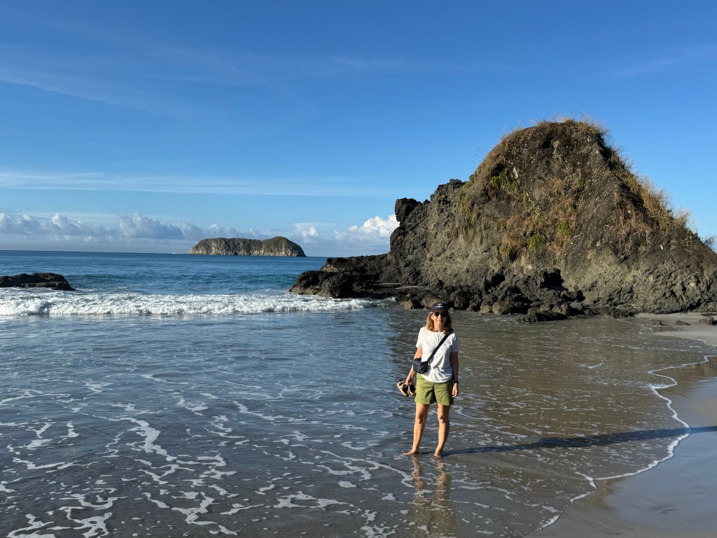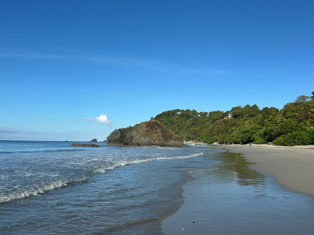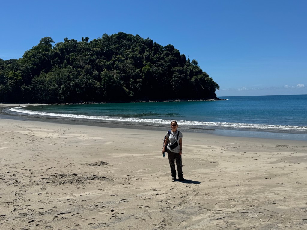 We arrived in Manual Antonio from the Monteverde Cloud Forest, a journey of about four hours. We started the day in several layers and 15 degrees; by lunch we were on the beach in shorts with sun and 30 degrees. The majority of the temperature change was in the first 20 minutes.