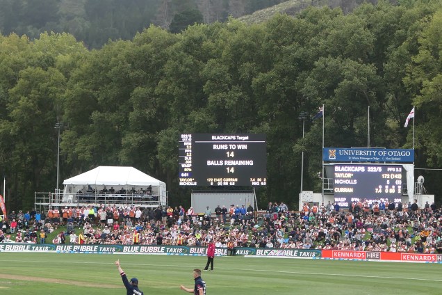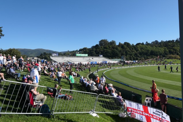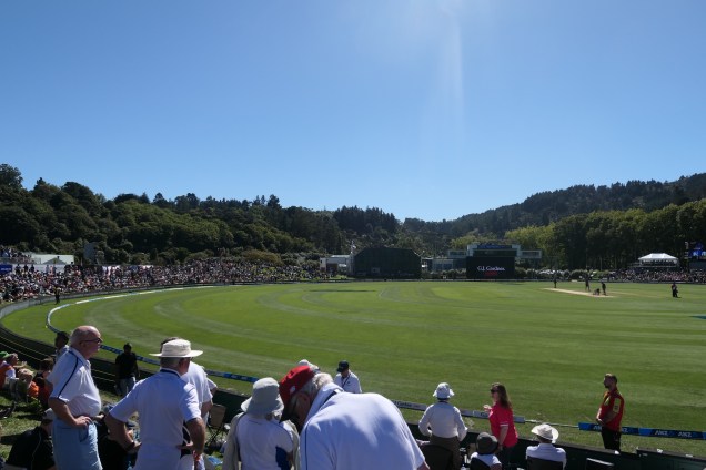 The fourth of the One Day Internationals between New Zealand and England was the highlight of our cricket experience down under. The ground is the university one and was a sell out at 5,500 with most of the “seating” on the banks. Equipped with our “fun fest” low level chairs we joined the crowd of students, locals and Brits. At the beginning of the day factor 50 sun cream was being dispensed to the crowd and by the end of the day we were reaching for the waterproofs and jumpers (typical Dunedin weather we were told). We saw three batsmen score centuries and an England collapse as Ross Taylor led New Zealand home on one leg….in the last over…..as we sat on the edge of our fun fest seats.