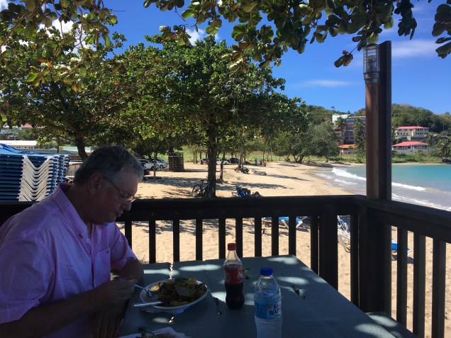 St Lucia has two airports – one for the intercontinental routes and the other, much smaller, for regional Caribbean routes. Our flights in and out of St Lucia were from the latter which has the most attractive “departure lounge” – food shacks by the beach.