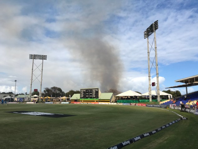 We returned two days later with the series won but hopeful for a more competitive match. The ground was shrouded in smoke from a bush fire which we had inadvertently driven through on our way. However the match never caught light as the hosts collapsed again, this time for 71. The locals we sat next to were very unhappy- “our batsmen a’int got no brains”.