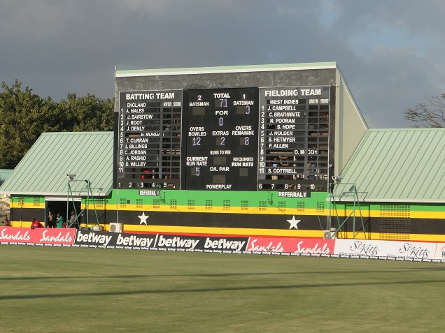 In contrast to the test match, the atmosphere had far more of a local Caribbean flavour. In the first match England initially collapsed but then recovered to set a ground record of 182. West Indies then just collapsed all out 45, second lowest international T20 score.
