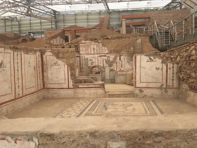 The highlight of our visit was seeing the terraced houses which are being restored to provide the best evidence of Roman life, other than Pompeii; they were the houses of the wealthy. We managed to see this section of the site and the church of the Virgin Mary with no other visitors – in the case of the former, due to a (modest) additional entrance fee and in the case of the latter a (short) walk from the main site.