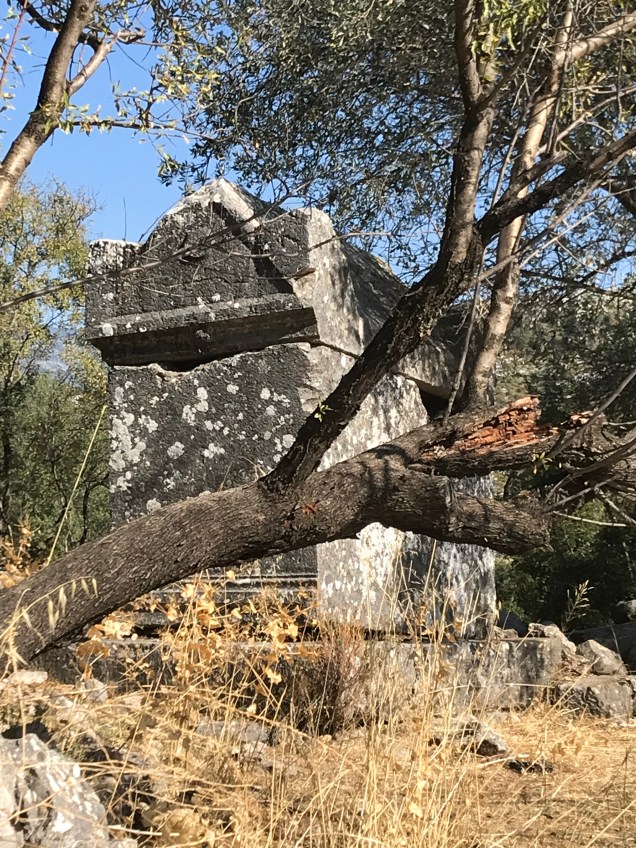 At Sidyma we were met by the wife of the local village mayor, who pointed us in the right general direction, in the absence of signposts or a site map, and then made us tea when we returned; we were grateful for our basic Turkish. The site is virtually undisturbed, except by villagers who have used some of the stones to build houses and farm the land around the site.