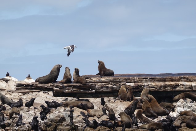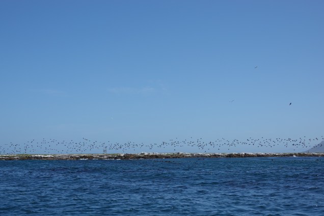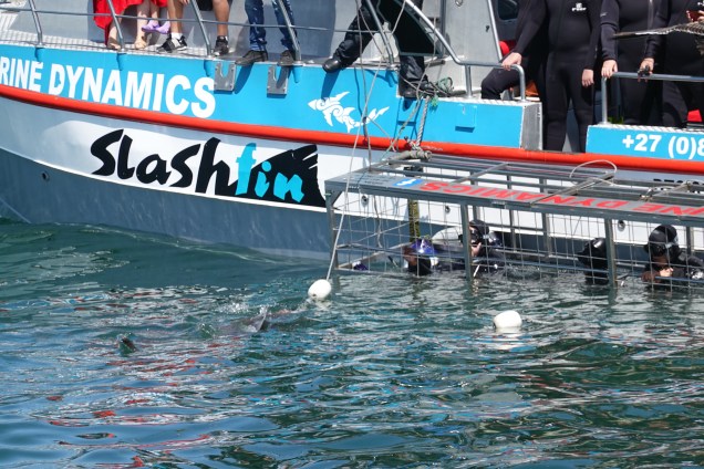 The seal colony thrives with 60,000 members, which can be smelt from some distance away, so we held our noses as we watched their swimming skills. The sharks we saw were being attracted by a cage diving boat. The divers were more visible than the sharks !