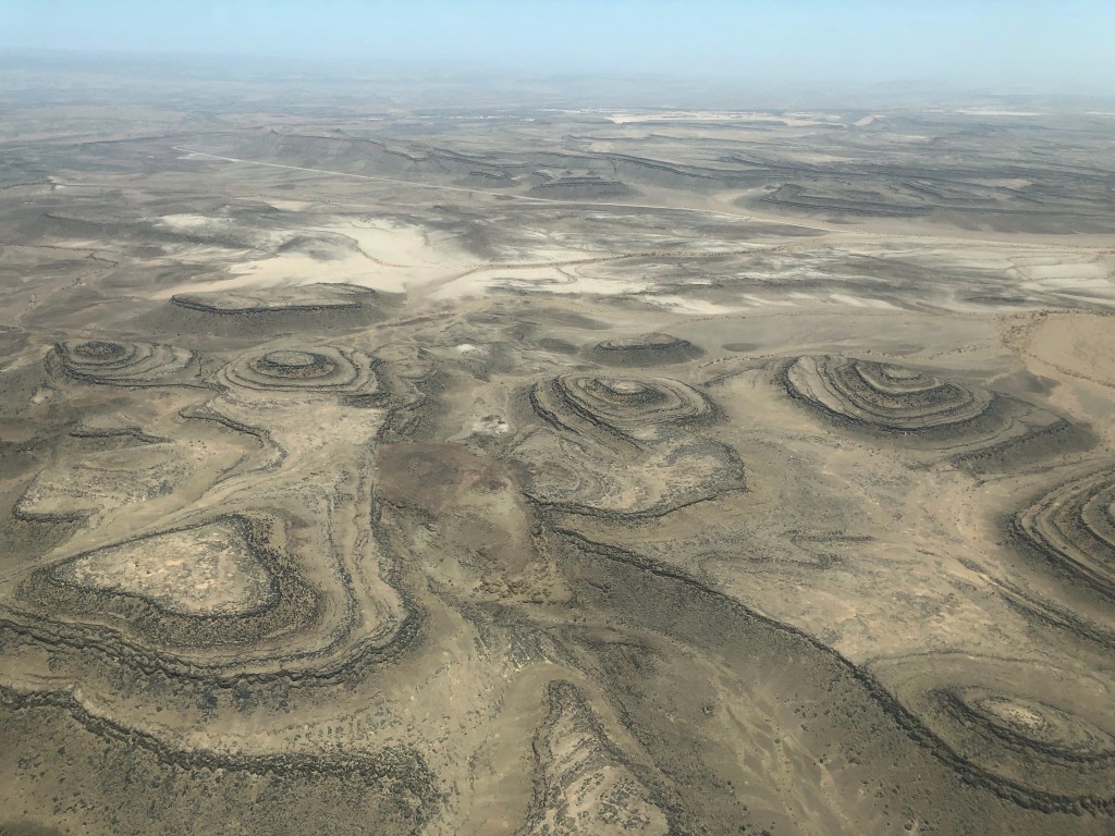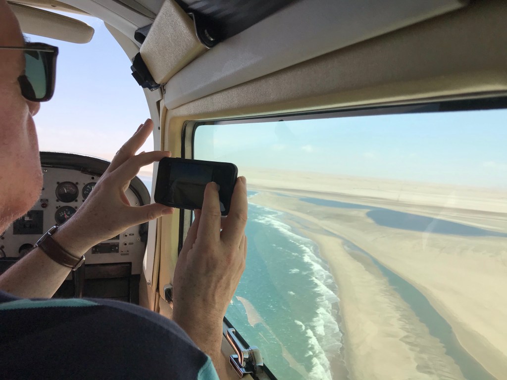 A number of charter companies operate fleets of Cessna 210 planes built in the 1970s and 1980s, seating between two and four passengers. We flew in V5-BOY and V5-RCK, built in 1975 and 1974, for our six internal flights, lasting between one and two hours. Flying mainly between eight and ten thousand feet, generally in clear conditions, we were able to see a variety of terrains.