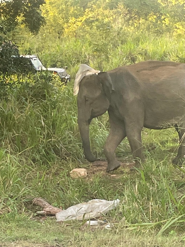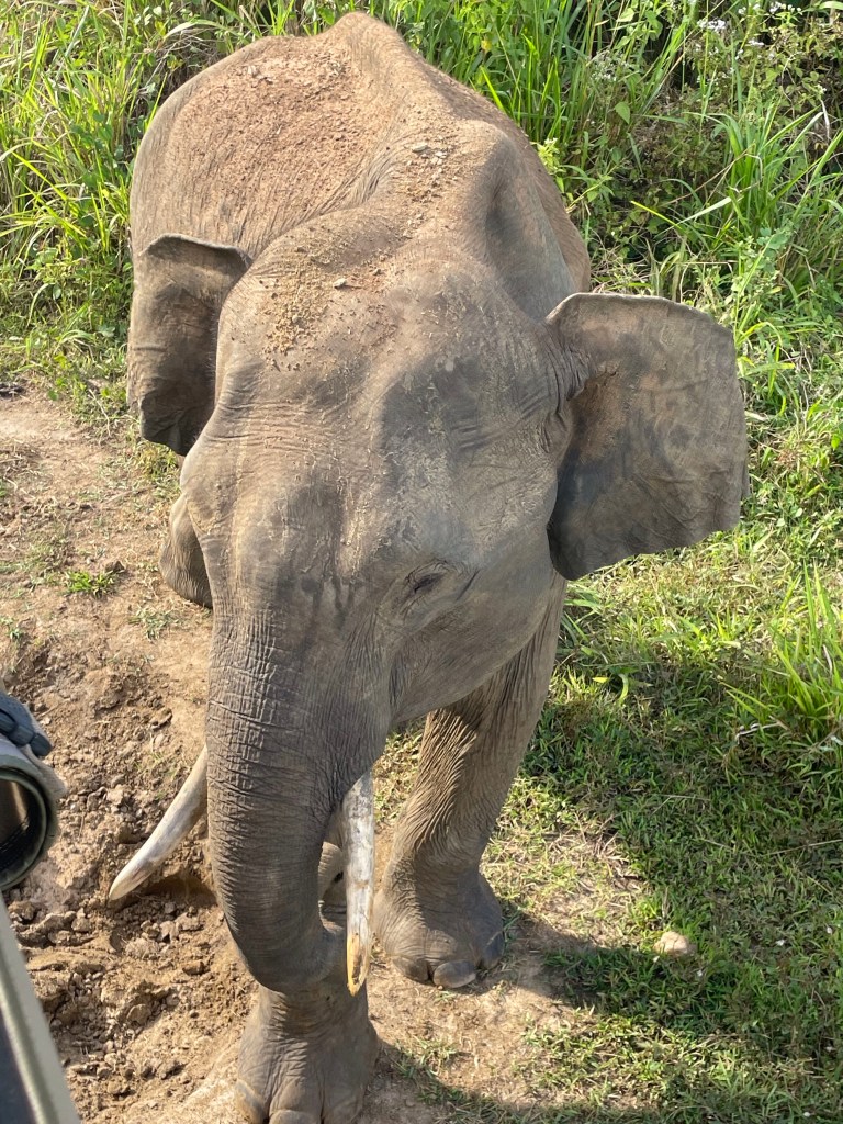 The Sri Lankan elephant is one of three subspecies of Asian elephant. It is endangered as a result of habitation loss created by growth in human population leading to the expansion of the rice paddy fields. With human encroachment elephants have been killed to protect property, in road and rail accidents and in the civil war by land mines. Sri Lankan elephants are smaller than African elephants but can still grow to 3.5m and 5,500 kg. Only 7% of males grow trusts; referred to locally as tuskers.