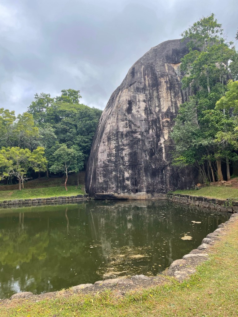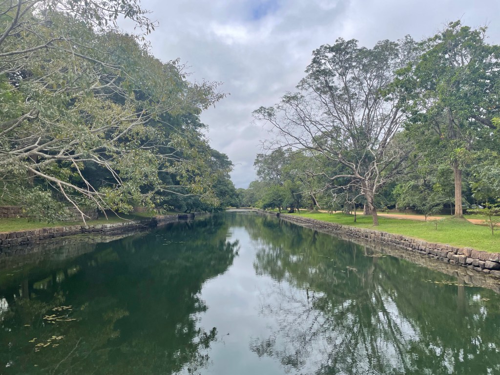 The building works at the site were developed in the 5th Century on the top of the rock (Kings Palace), on the rock face (frescos of half naked women) and at the base of the rock (water gardens). The water gardens include underground conduits transporting water around the site for lily ponds, fountains and a moat inhabited by crocodiles for added defence.