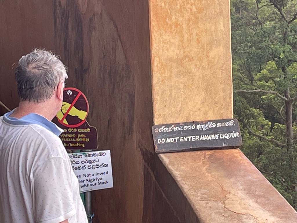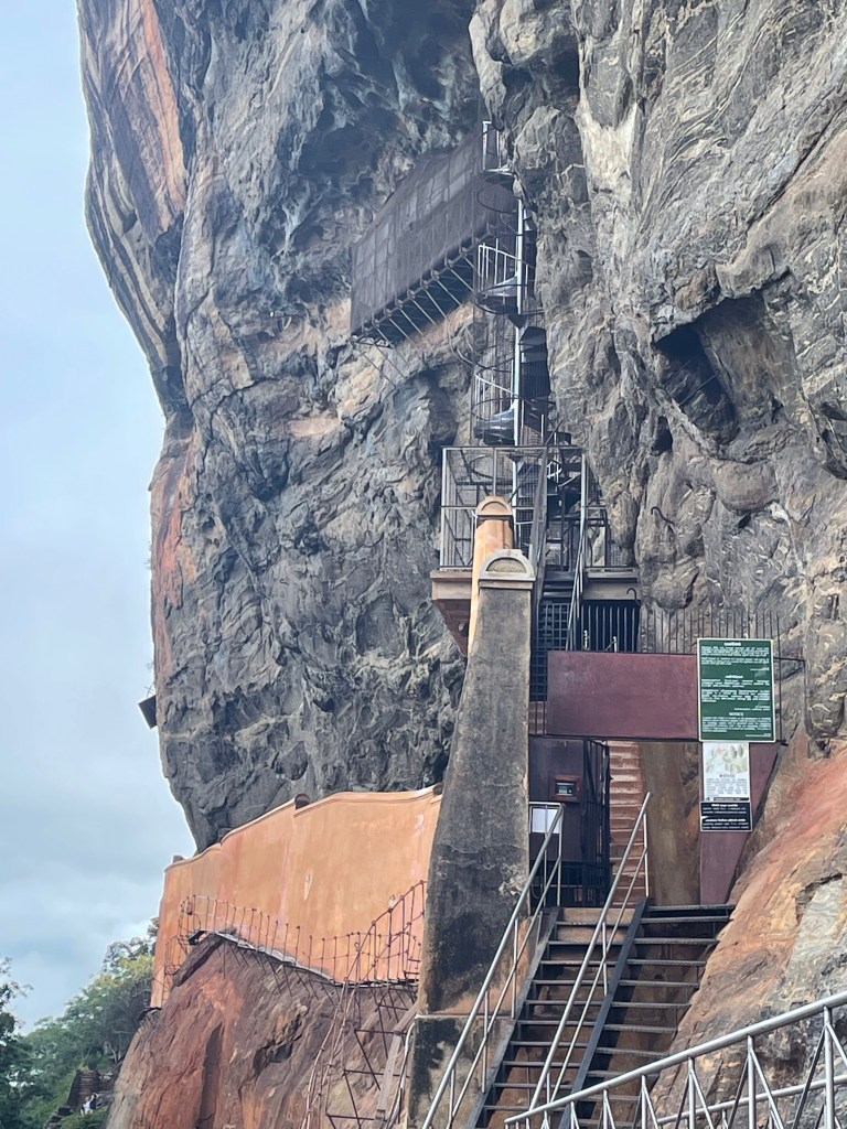 Sigiriya is a world heritage site rediscovered at the end of the 19th century by British archaeologist HCP Bell. Its centre piece is a 180m high rock which is a manga plug from a long eroded volcano. The peak can be attained in 1,222 steps, some very narrow, steep and clinging to the edge of the vertical face. We were grateful for our early start avoiding the crowds of predominantly locals on these paths.