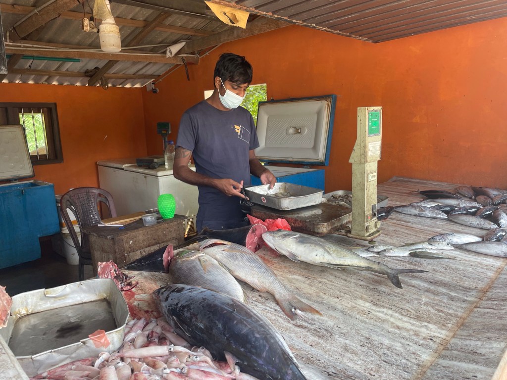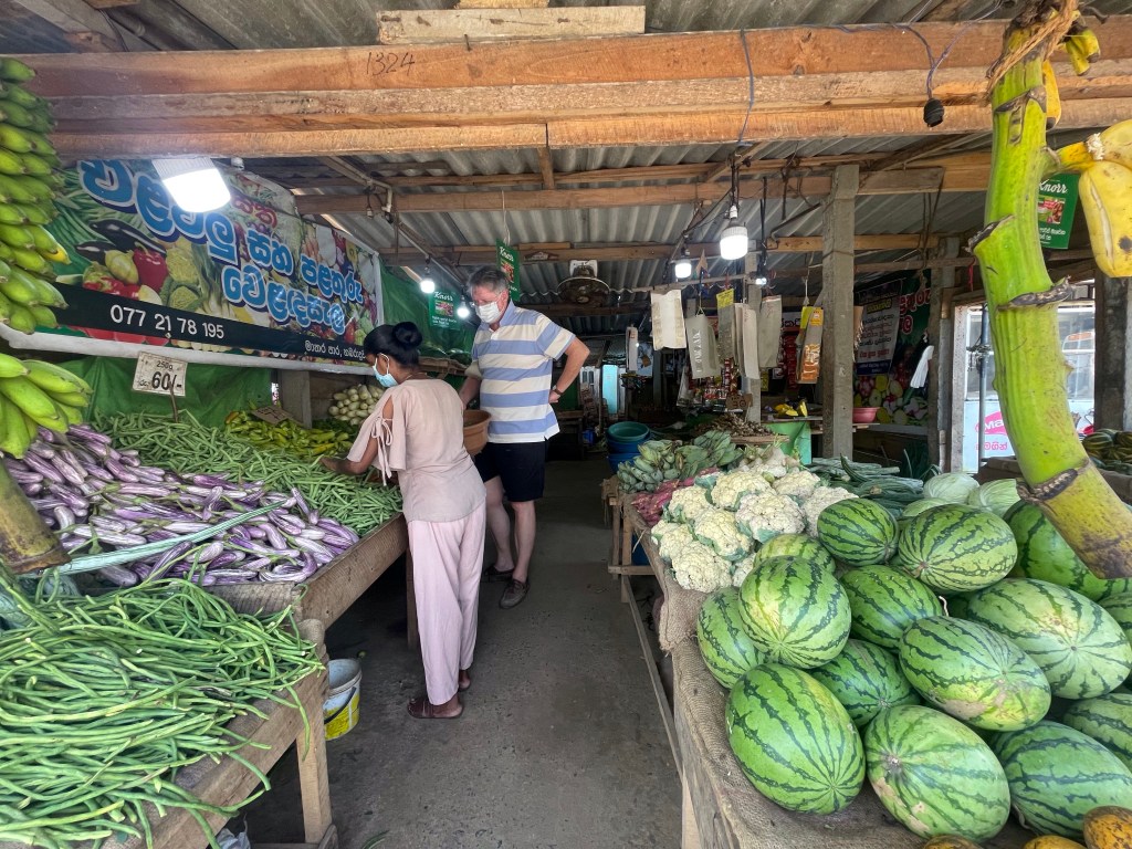 Our agent knows that we like cooking so booked a private Sri Lankan cookery class. Earlier in our trip we saw a hotel hosted class which was more demonstration and photo opportunity than cooking. However, we were taken to the private home of Danesha who immediately took us in a tuk-tuk to a local market to buy vegetables and prawns.