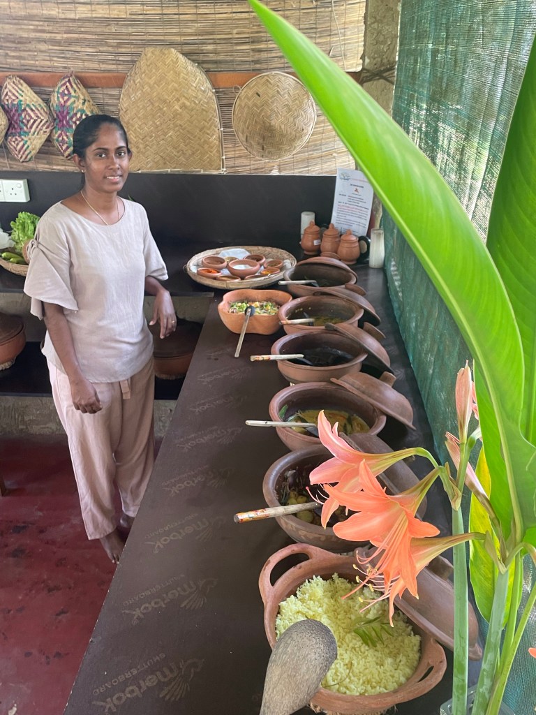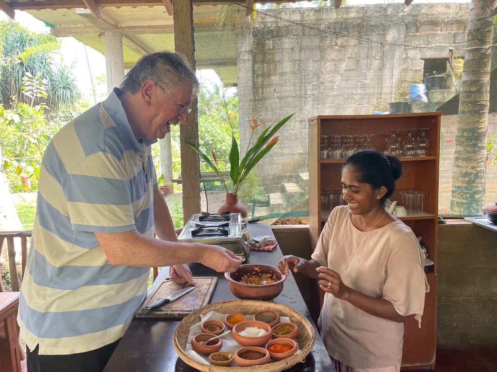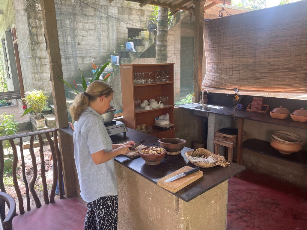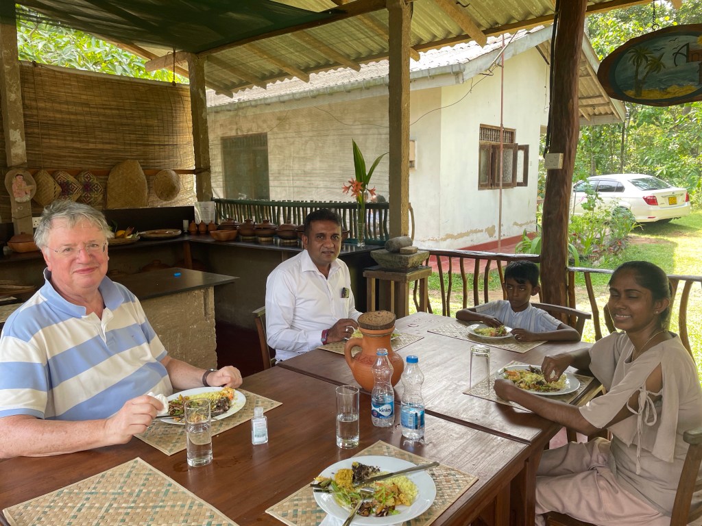 Danesha was a charming and excellent teacher and together we prepared; fish curry, prawn curry, dhal, green bean curry, potato curry, fried aubergine salad and rice. Our driver, Sumedha, Danesha and her children joined us for lunch in her outside kitchen for the spicy dishes (unexpectedly so for Tim after eating a green chilli disguised as a green bean).