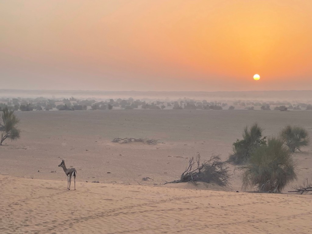 Al-Maha is the only hotel in a 225 square km desert conservation park, representing approx. 25% of the land of the Dubai Emirate, close to the Oman boarder. The conservation area was created by the Maktoum family in the late 1990s, which is also when the hotel was built. The park relies on underground water to create lakes for birds and animals and to enable trees to survive in the harsh environment. The water pumps are powered by solar energy.
