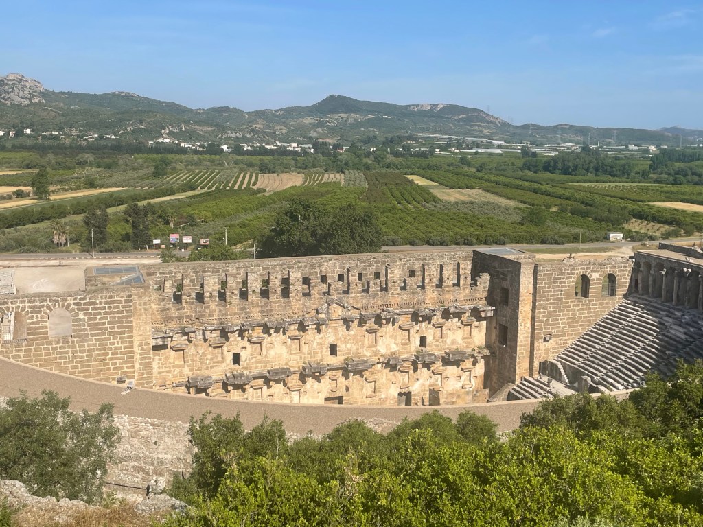 Aspendos is an ancient city situated 46km east of Antalya that we visited on our drive from Cappadocia to Antalya. It is famous because its two storey amphitheatre is virtually intact with minimal modern restoration. This is due to the extensive repairs made in the early 13th century by a Seljuk Sultan. The amphitheatre hosts an annual ballet and opera festival, recently resumed post pandemic.