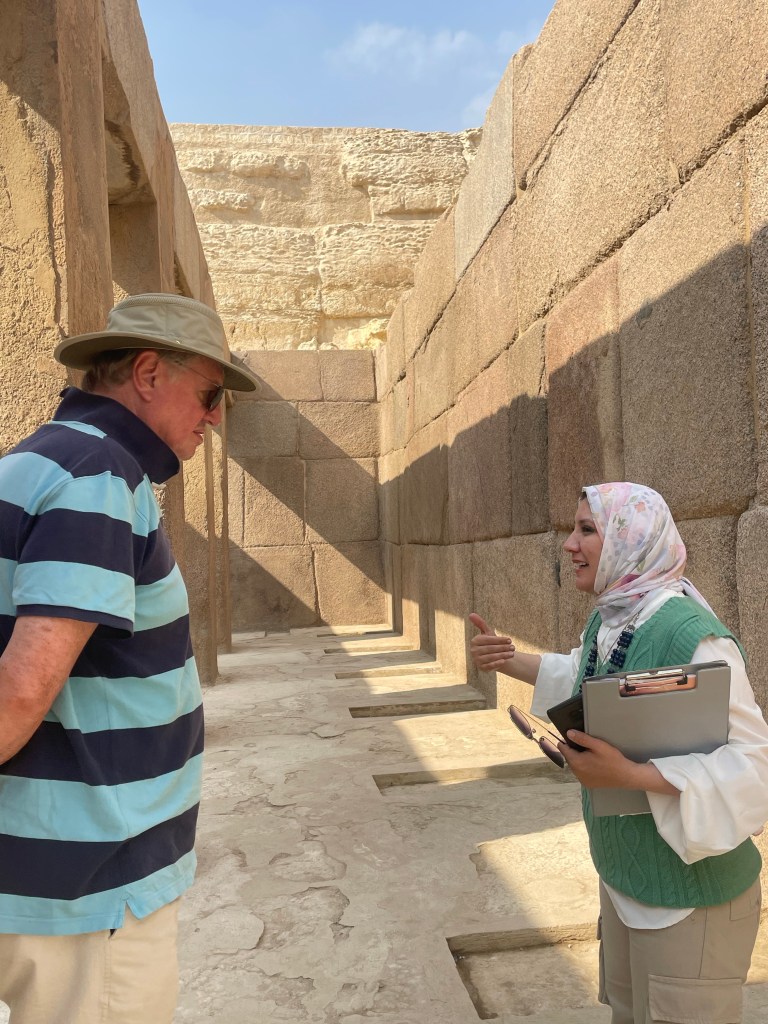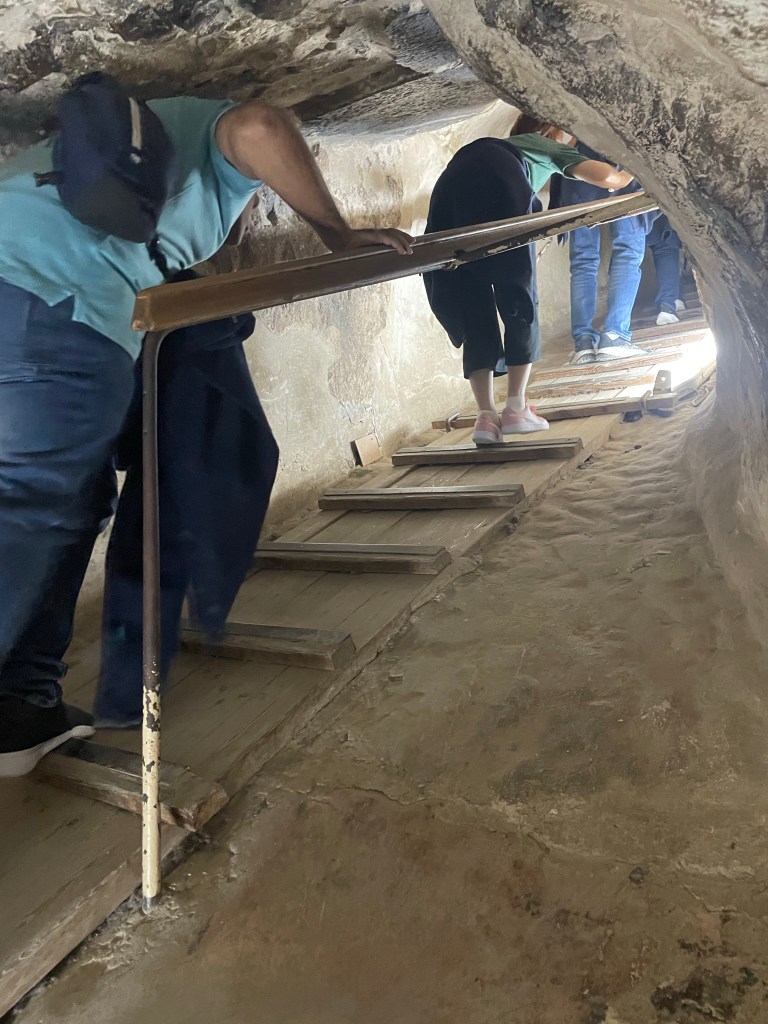There are three main pyramids- Khufu, Khafre and Menkaure. Khufre, the great pyramid, is the largest at 146 metres high. In addition there are three Queens’ pyramids. Howard Vyse, a British soldier and Egyptologist, has left his mark on at least one of the pyramids as he tried explosives in the 19th century as a means of excavation. One upmanship on French soldiers who had used the Sphinx for target practise in Napoleon’s time.