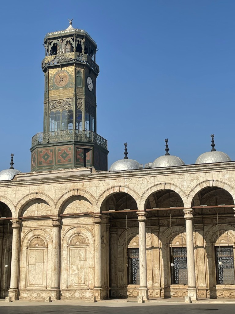 The Citadel is built at the top of Cairo. You are supposed the be able to see the pyramids, but this is impossible due to the air quality. Some of the initial building materials were removed from the pyramids. The main attraction now is the 19th Century Mosque of Mohammed Ali (nothing to do with “the greatest”). In its courtyard is a clock given to the Egyptians by the French in exchange for the obelisk in the Place de la Concorde, but it arrived damaged and has never worked. We were surprised by how few tourists there were at the Citadel – for many Cairo is a staging post including only the pyramids.