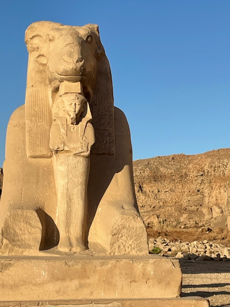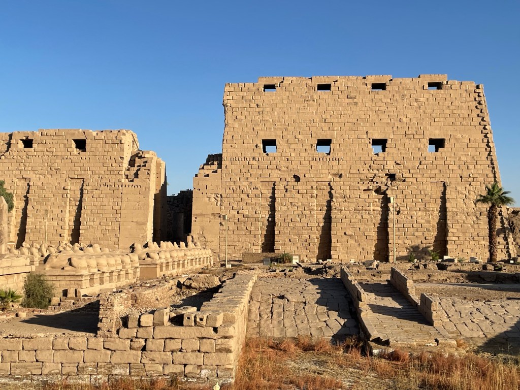 Karnak is a temple complex large enough to contain ten cathedrals. It was built, added to and changed over a period of 1500 years. It is dominated by the temple of Amun-Ra – the sun god and Egyptian equivalent to Zeus.