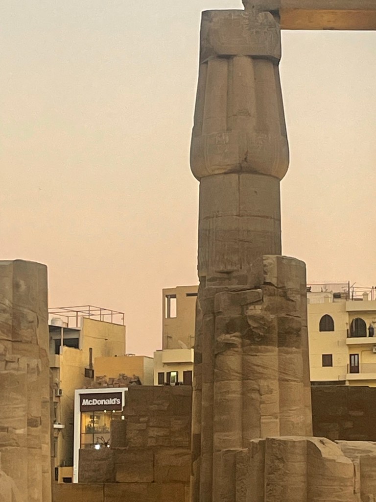 Largely built by Amenhotep III (1390-1352 BC) and Ramses II, the longest reigning pharaoh, (1279-1213 BC). It is connected to Karnak by the 3km avenue of the Sphinx. The temple sits close to the Nile and surrounded by the current city of Luxor.