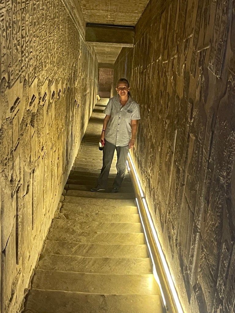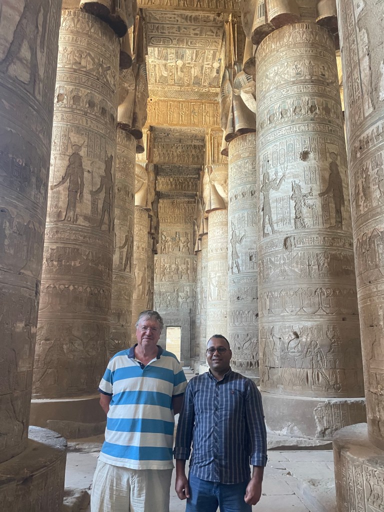 As our ship had not been able to sail north of Luxor travelled by minibus (the other four of our group skipped the trip), although the journey was made quicker by the police allowing us to use the newly built desert highway which we were told is not always the case for tourists. We were rewarded by having the site almost to ourselves.