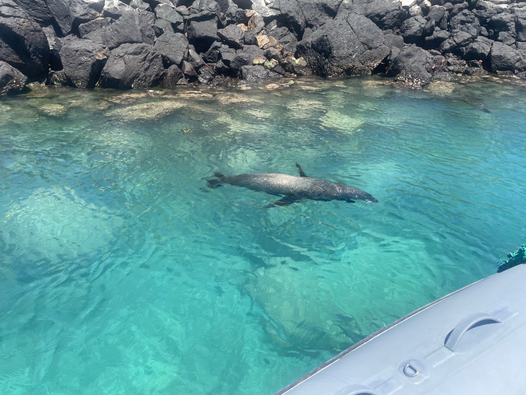 The snorkelling in tranquil, shallow turquoise waters off Santa Fé allowed us to get close to sharks, turtles, rays and baby sea lions.