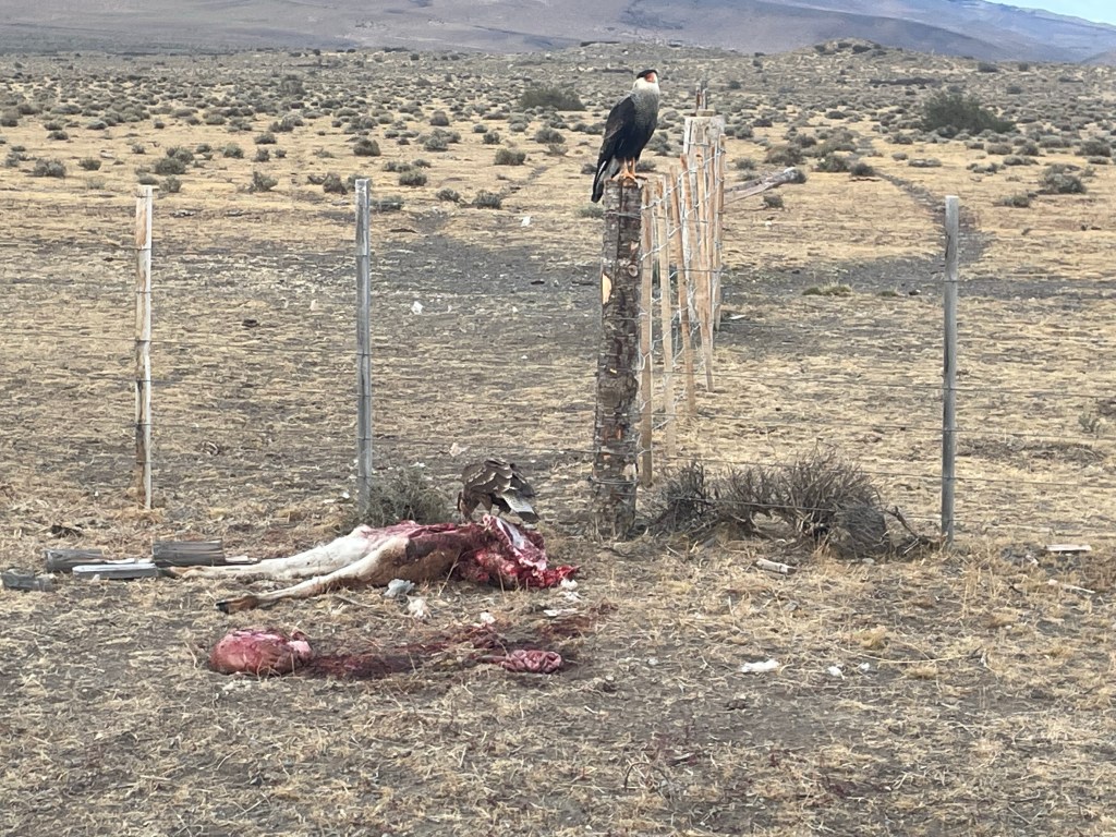 This Gunaco was killed by a puma – once the puma had enjoyed a meal or two the scavenger birds move in – this one is a caracara