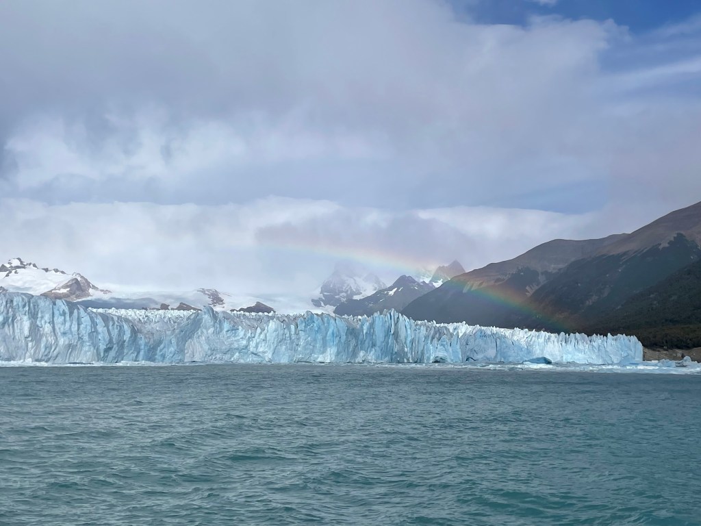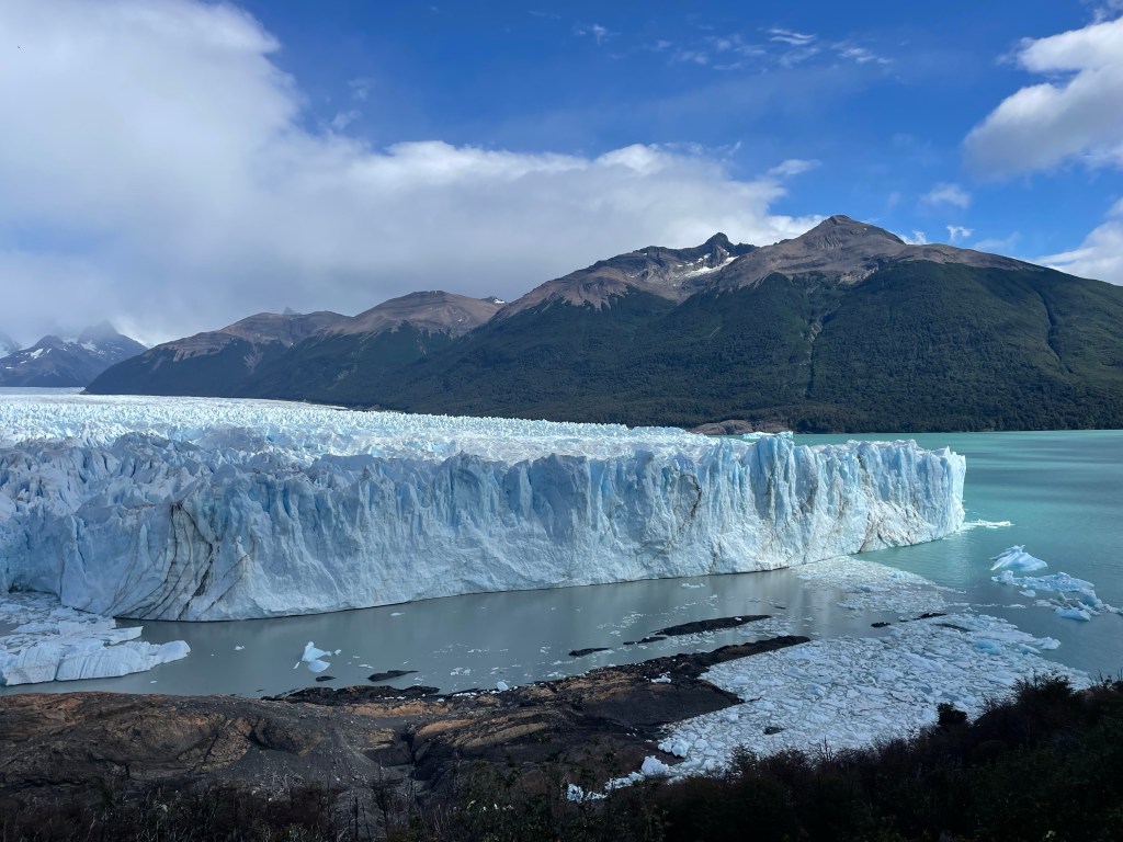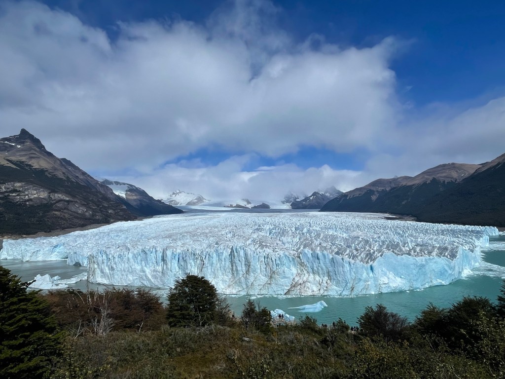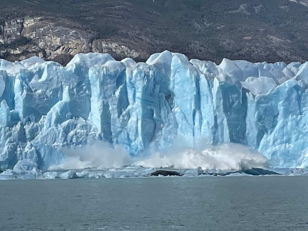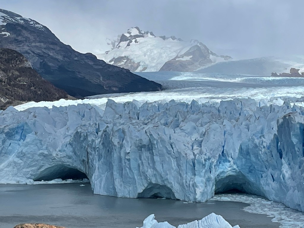 Perito Moreno is the main attraction in the Los Glaciers National Park. Named after the explorer who discovered Lake Argentina (“Perito” is a nickname meaning explorer), but who never saw the glacier. It is 30km long, 5km wide and at its highest 70m (Nelson’s column is 51m). It is one of the few glaciers considered stable, although this is currently under review (the locals think it is shrinking). It moves at two meters per day at its centre and is regularly producing icebergs. It can be viewed from a boat, at a safe distance, and from 4.7 km of walkways on the opposite land. We did both.