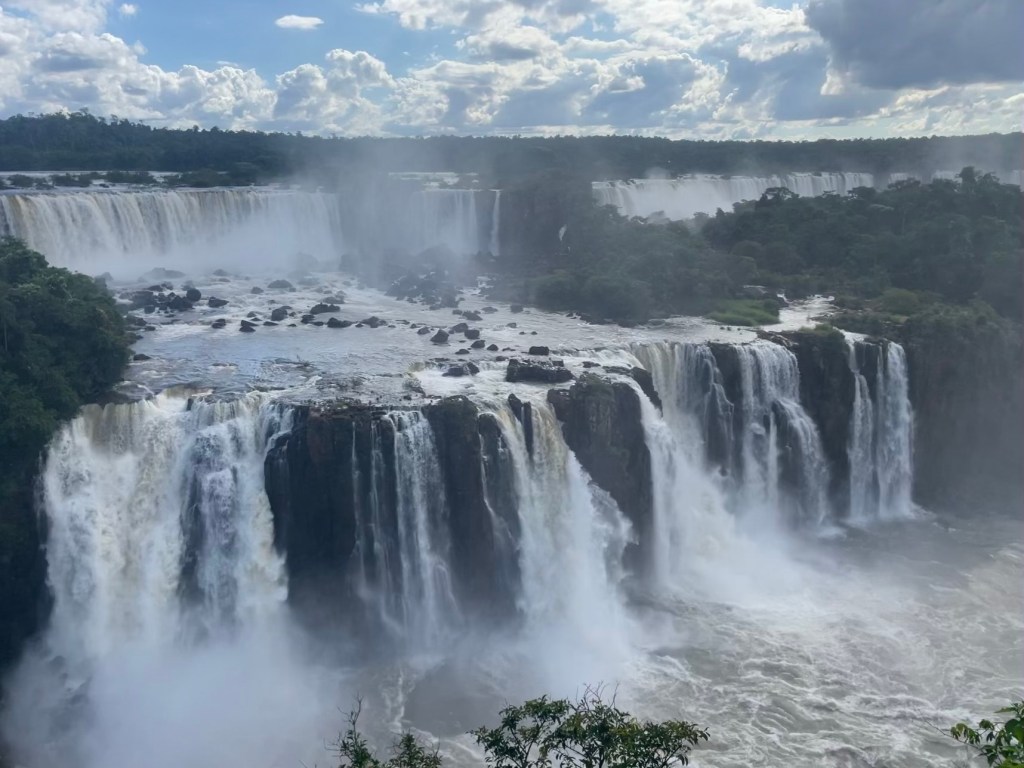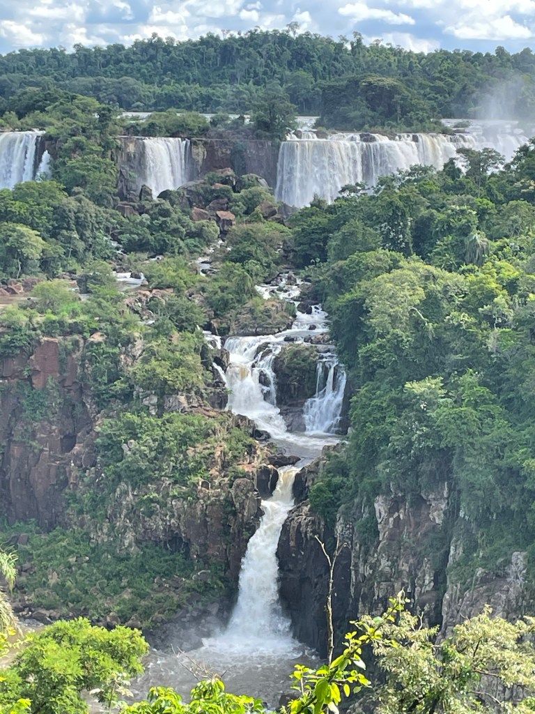 The Iguazu Falls are the largest falls system in the world with 275 drops over almost 3km. The longest drop is the Devil’s Throat at over 80 m. The guides say that although the majority of the falls are in Argentina, the best views are from the Brazilian side, so we visited both sides. On the day, the waterflow was slightly above average at 1.7 million litres per second (an Olympic swimming pool holds 2.5 million litres).