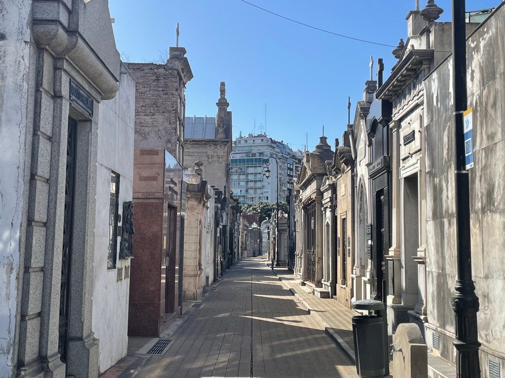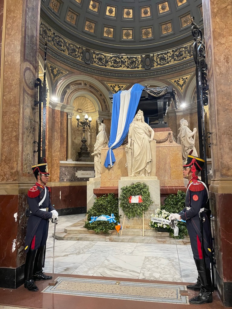 The Cemeterio de la Recoleta is Buenos Aries most visited tourist attraction. “Streets” are lined with the tombs, statues and mausoleums of past politicians, generals, the rich and the famous.The mausoleum of Eva Peron’s familyA statue of General Belgrano in the Plaza de Mayo, where Argentinian’s gather in protest or celebration. At the time of our visit there was a heavy police presence as the city was experiencing anti-government demonstrations. The stones by the statue have been placed there by the families of some of those that died of covidThe Casa Rosada on the Plaza del Mayo with the balcony where Eva Peron adressed the throngs of empassioned supportersThe tomb of San Martin – his body was returned to Argentina 30 years after he died in exile in FranceWhile this building could be in Paris, it is government officesOne morning we walked around the large Ecological Park, established as a park and wetlands centre, which sits between the new commercial district and the riverConverted warehouses in the Puerto Madero area, a good spot for lunch after our walk in the Ecological ParkColourful buildings in the La Boca districtNo visit to Buenos Aries is complete without a visit to La Bombonera Stadium where Boca Juniors play. The colours were apparently decided after an inconclusive debate which was later resolved by agreeing that the colours would be those of the flag of the next ship to arrive in the port, which was Swedish