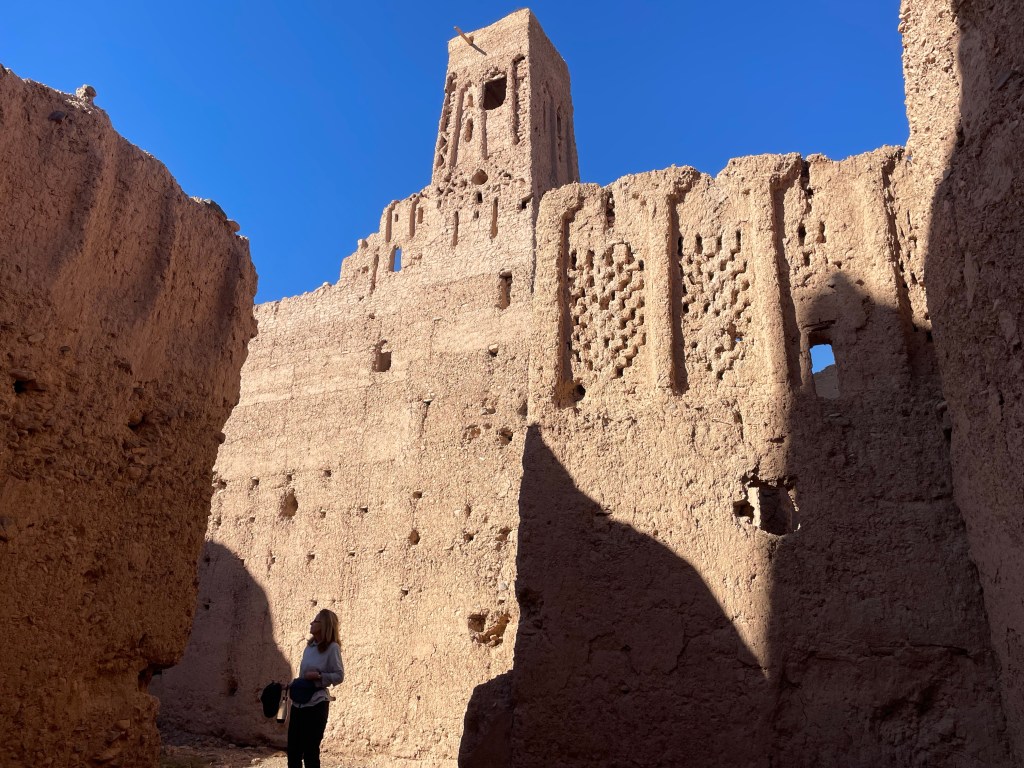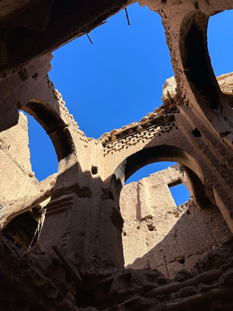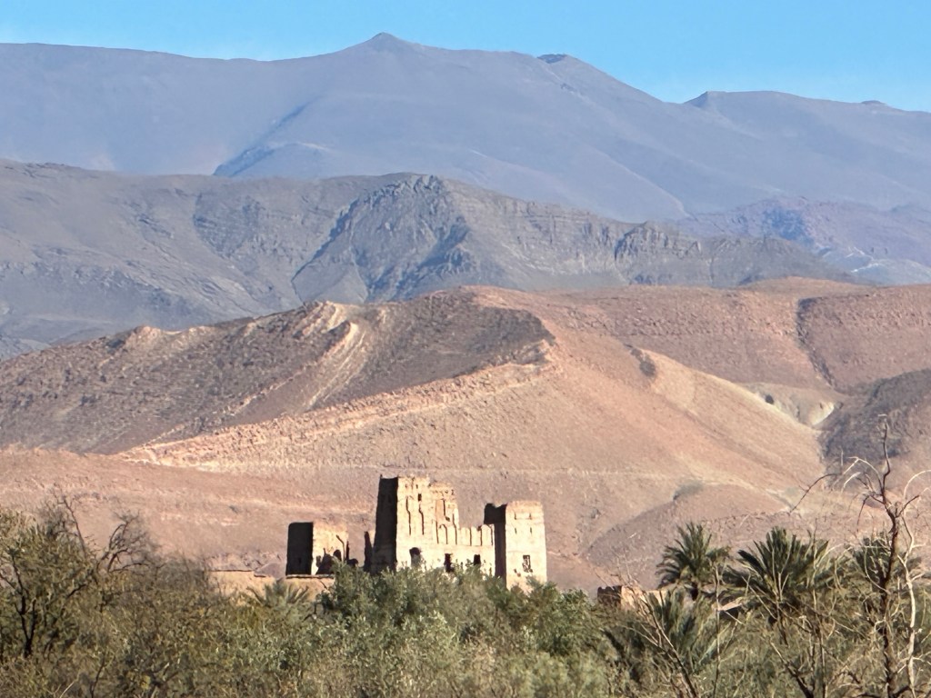 Kasbahs are not well suited to practical modern living, so many have fallen into disrepair. A modern house, with a kasbar style might be found adjacent to a ruin, both owned by the same family. The government offers protected status provided that the owner can afford the rennovation and maintenance costs; this has been done by some wealthy Moroccan families and a few hotels. The hotel we stayed in was a 19th century kasbah bought and converted by a French designer 20 years ago. The rooms comprised a maze with several internal staircases – very easy to get lost – with walls that were good for keeping the heat out during the days and the warmth in at night, but not conducive to wifi signals !