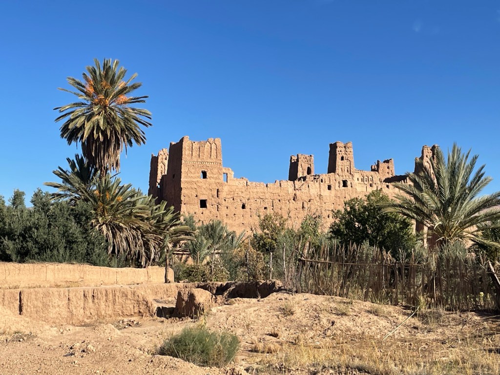 Skoura is in the middle of the “Route of 1,000 Kasbahs”. Kasbahs are fortified citadels built for defense and protection, typically with no external windows, but slot holes to fire on approahing enemies. They are generally built from compacted mud and straw with walls upto one metre thick. The earliest kasbah we saw was built in the 11th century.