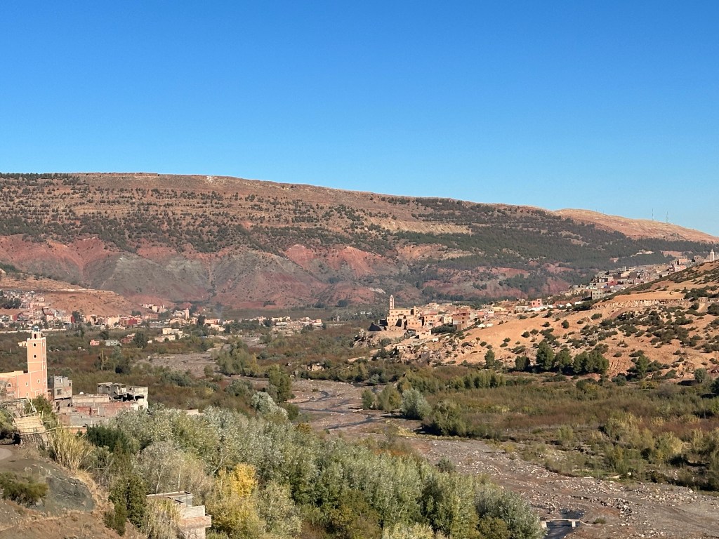 We had originally booked our third and final hotel in The Atlas Mountains. Sadly the area was badly hit by the earthquake and the hotel is under repair for 6-12 months. As an alternative, we booked a hotel outside Marrakesh within an hour or two drive to the Atlas Mountains. From here, we arranged two day trips to trek in two valleys – Imlil Valley and Ourika Valley. In the former we saw extensive earthquaque damage with roads, houses and hotels under repair; although the Ourika area was also damaged, it was less extensive. Both areas derive a significant part of their income from tourism – some tourists have returned but numbers are much lower.