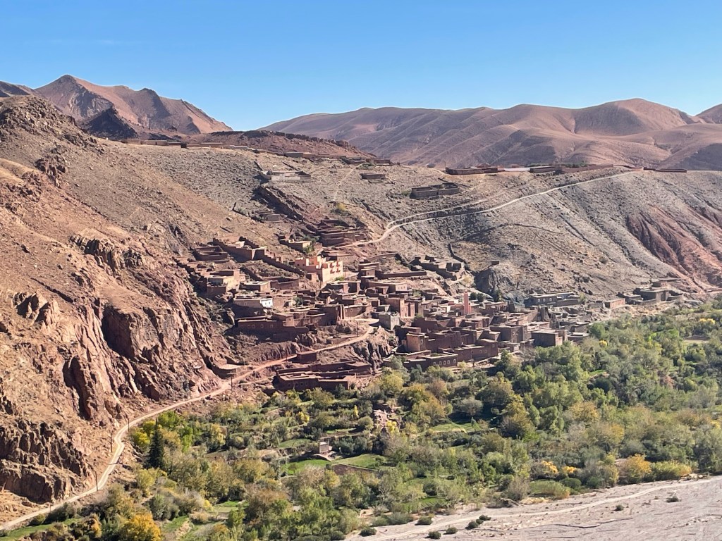 Skoura is on the eastern edge of the High Atlas and our hotel organised guides to explore the nearby mountains, valleys and deserts. We would have struggled without a guide as there are no marked paths and we didn’t see other hikers, although we passed through a number of villages where the adults were welcoming and the children curious. We did two treks from Skoura, through very different dramatic landscapes.