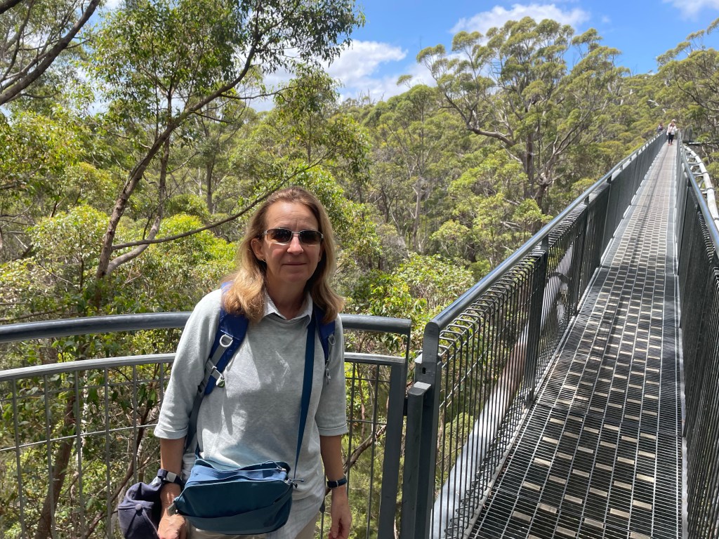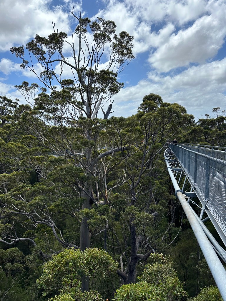 The Valley of the Giants is a National Park situated between Walpole and Denmark which are both small towns on the south coast of WA. The Giants are red tingle trees, another type of giant eucalyptus. Typically the trees grow to 45m (Nelson’s column is 51m) and can have a base circumference of 24m. The main feature at the Valley of the Giants is a 600m tree top walk amongst the canopy.