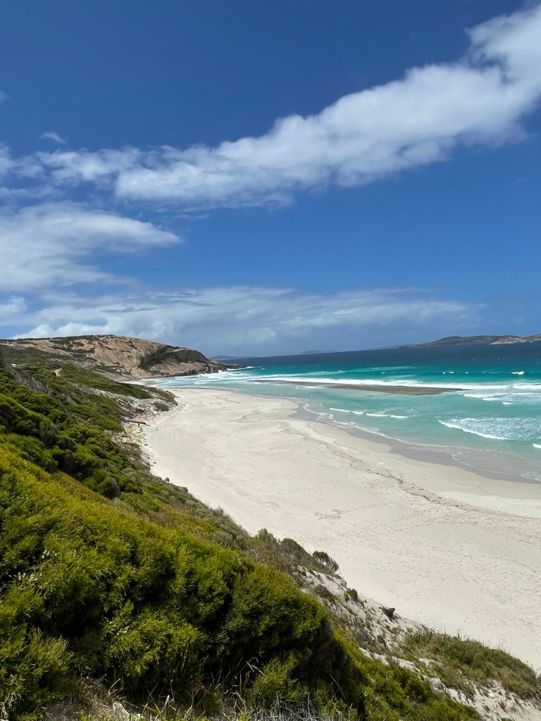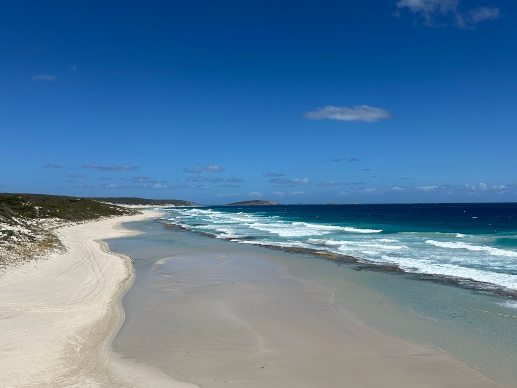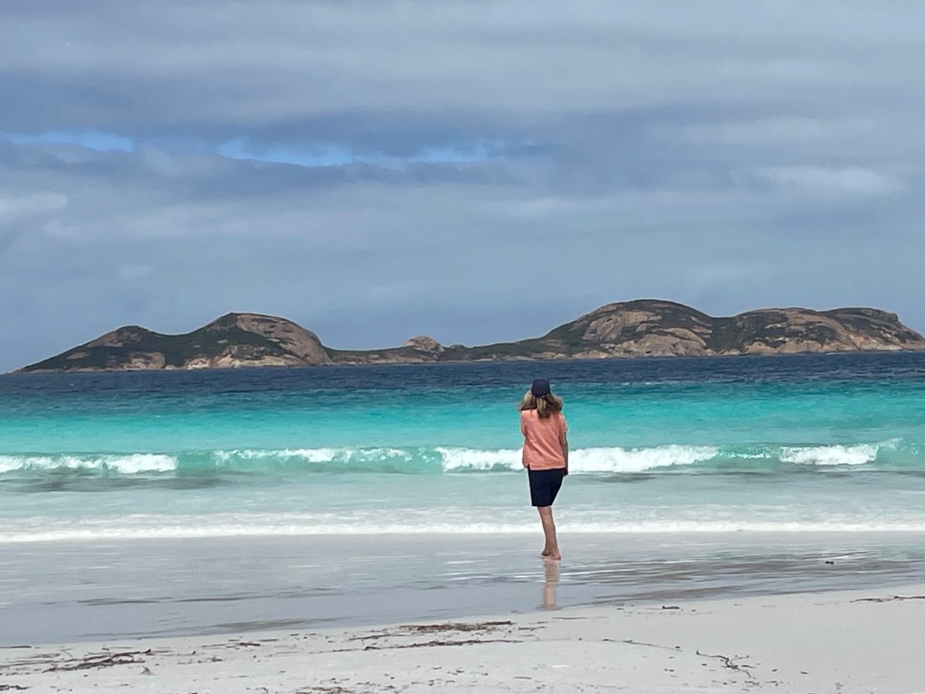 However, the area around Esperance has mile upon mile of the most beautiful bays and beaches we have ever seen. Inspite of this, they are very quiet as Esperance is so far from anywhere and only has a handful of basic motels and campsites. The best known beach , Lucky Bay, named by Captain Flinders who found safe anchorage there, was voted the Best Beach in the World in 2023. Our favourite, because it was even quieter was Twighlight Bay beach, but it was almost impossible to chose as there were so many with very few people. In all, over two days, we visited around a dozen for picnics, swimming, walks and photo stops.