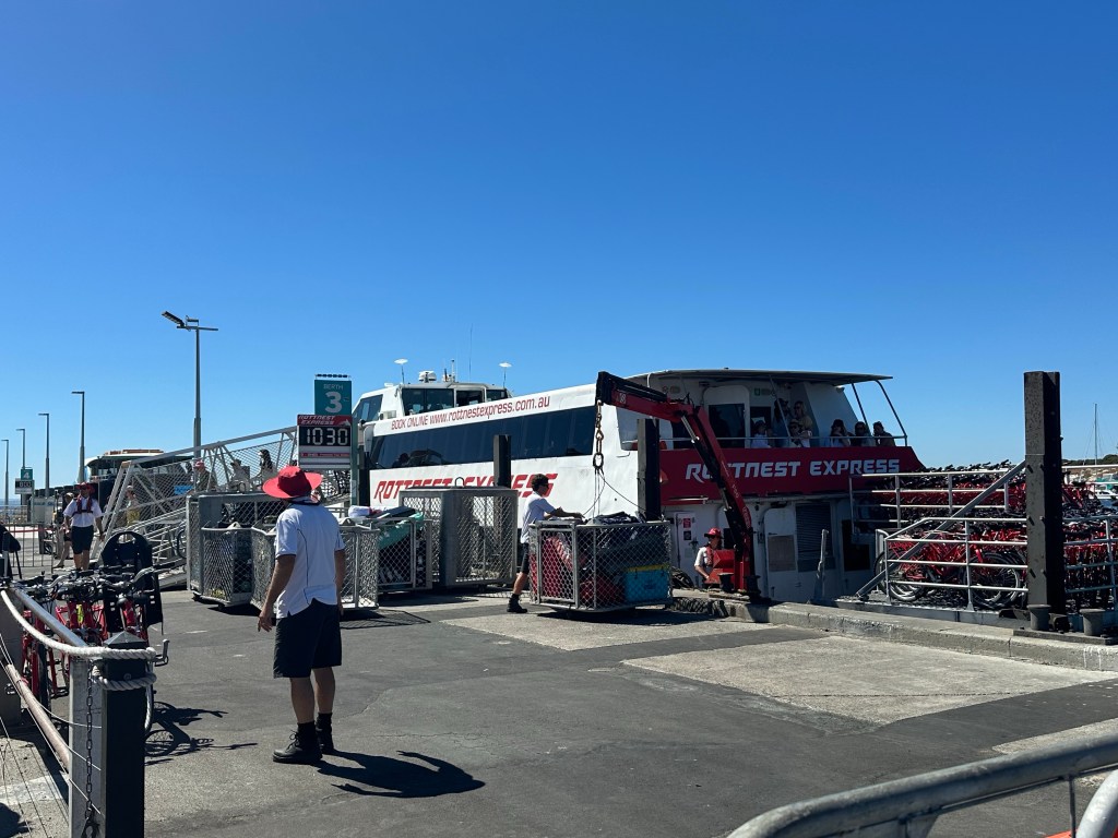 It is now a protected reserve and popular car-free tourist destination. Appromimately 80% of the tourists are day trippers, the remaining being predominently campers, or in our case “glampers”. Most of the overnight visitors are from the Perth area and bring all their gear on the ferry with them – from gazebos to bikes and cool boxes – “checked-in” to cages on the deck of the ferry and transported to/from your accommodation by the ferry operator.