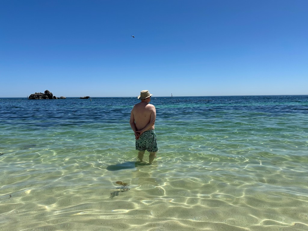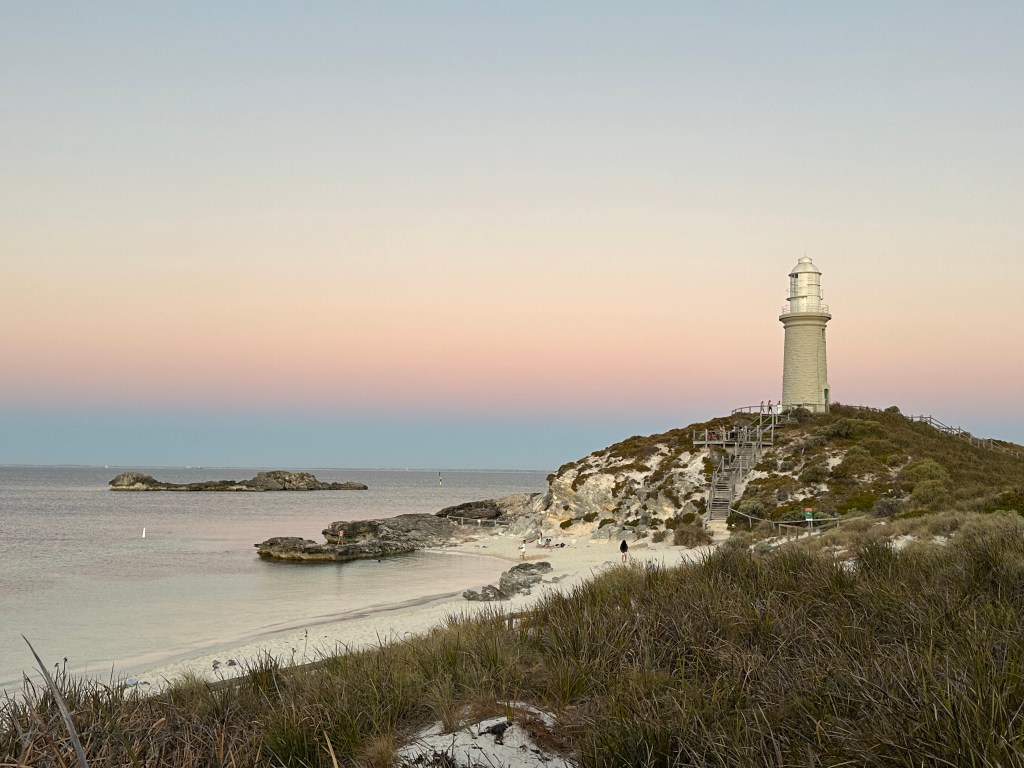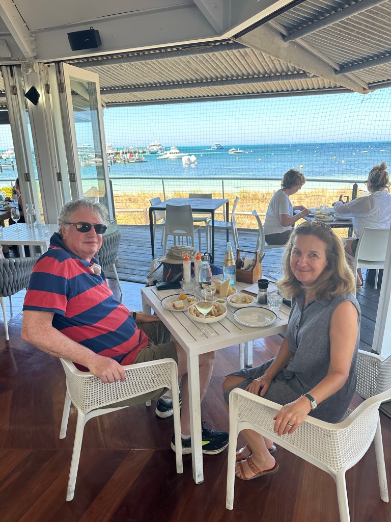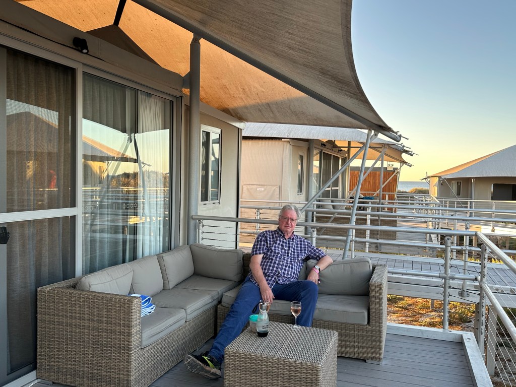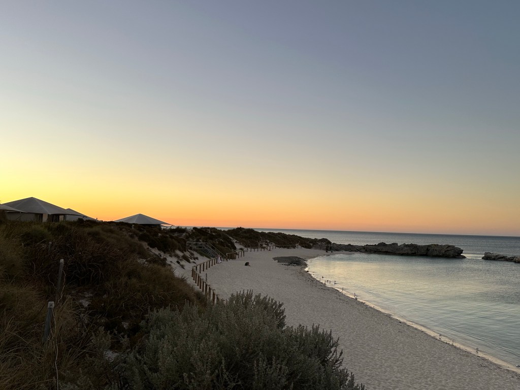 To protect its unique atmosphere as a relaxed family destination within a reserve, Rotto has quite a few rules for visitors. These include limited development – just a few restaurants/bars, one general store, some cabins and a few campsites – a few paths for bikes and pedestrians and “island quiet hours” between 10pm and 7pm. Restaurants have to be empty before 10pm so take dinner bookings for arrival 5.30-7.30pm. We gleaned the local dress code from a Perth uber driver who told Tim to “just pack your thongs (flip-flops to Brits) and a singlet mate”. The beaches were amazing, with one just a few steps from our “tent”, although the sea was colder than we were expecting; refreshing as we were there during a heatwave. We saw dolphins twice, only about 10m from the shore.