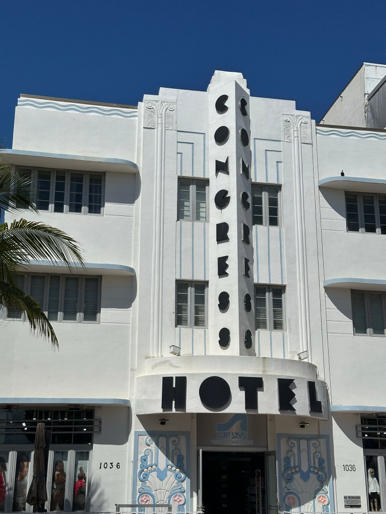 The sea facing promenade, Ocean Drive, closed to traffic during our visit, now comprises an array of restored Art Deco hotels some of which have been expanded by linking them to hotels on Collins Avenue running parallel behind Ocean Drive.