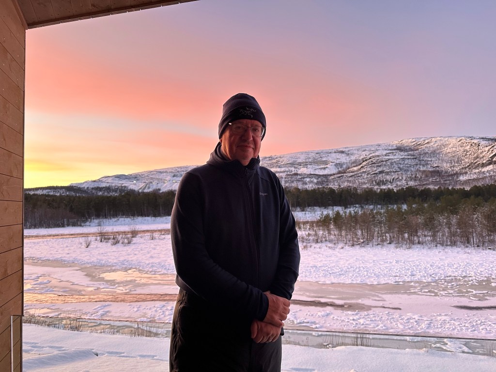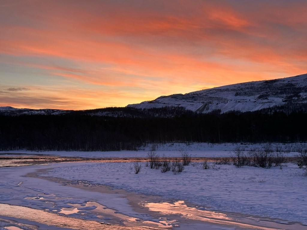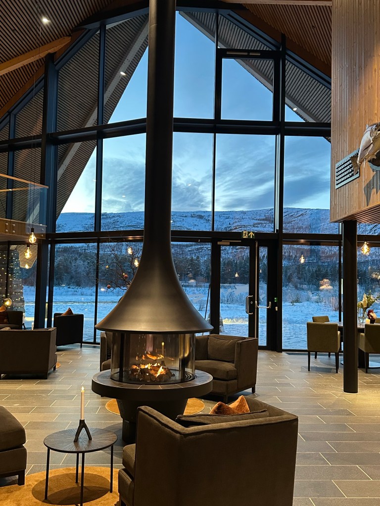Sorrisniva is a base for outdoor activities, especially viewing the Northern Lights. We visited during the Polar Winter when the sun never comes above the horizon. It does however come close to the horizon for several hours meaning it is light from about 9am to 1.30pm with the extent of the light depending on the cloud cover. Sunrise and sunset tend to merge from one to the other; it was odd watching the sunset at lunchtime ! The temperature was considered “warm” by the locals ranging from minus 1 to minus 10 but with another 5 degrees of windchill at times.