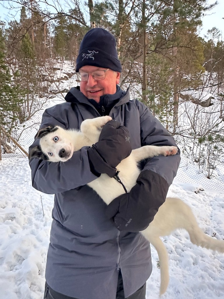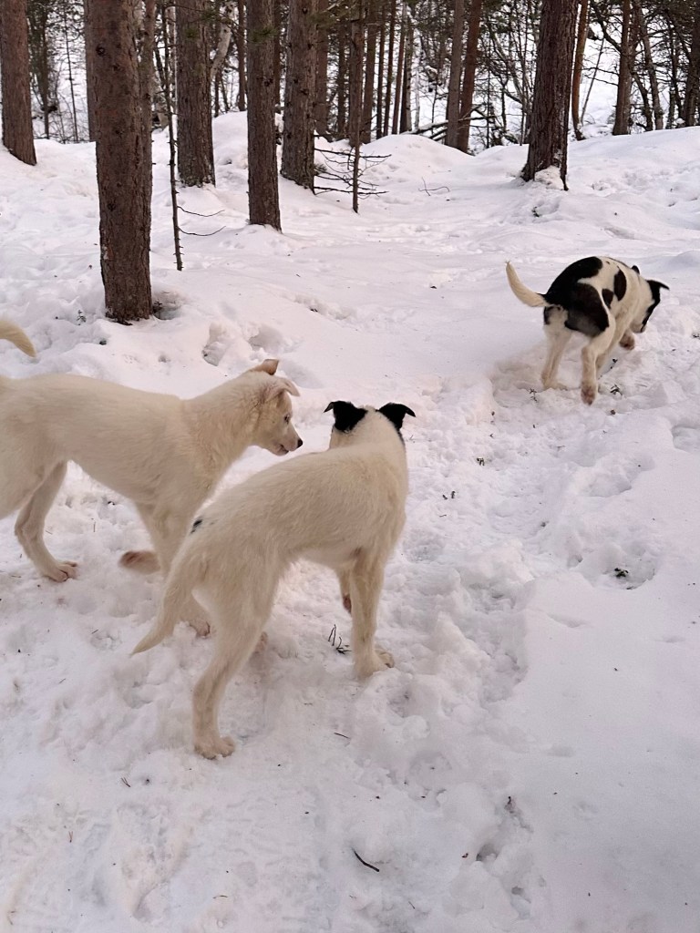 We visited a husky farmer who both races and takes guests on tours of upto 14 days. At the time of our visit to the farm, we could not do any sledding as it was too icy for the carts used for summer training but not enough snow on the tracks for sledding. The farm is home to 30 huskeys. In the big races it is usual to have a team of 14 but for recreation 6 or 8. In race conditions a team can run upto 100 miles a day.