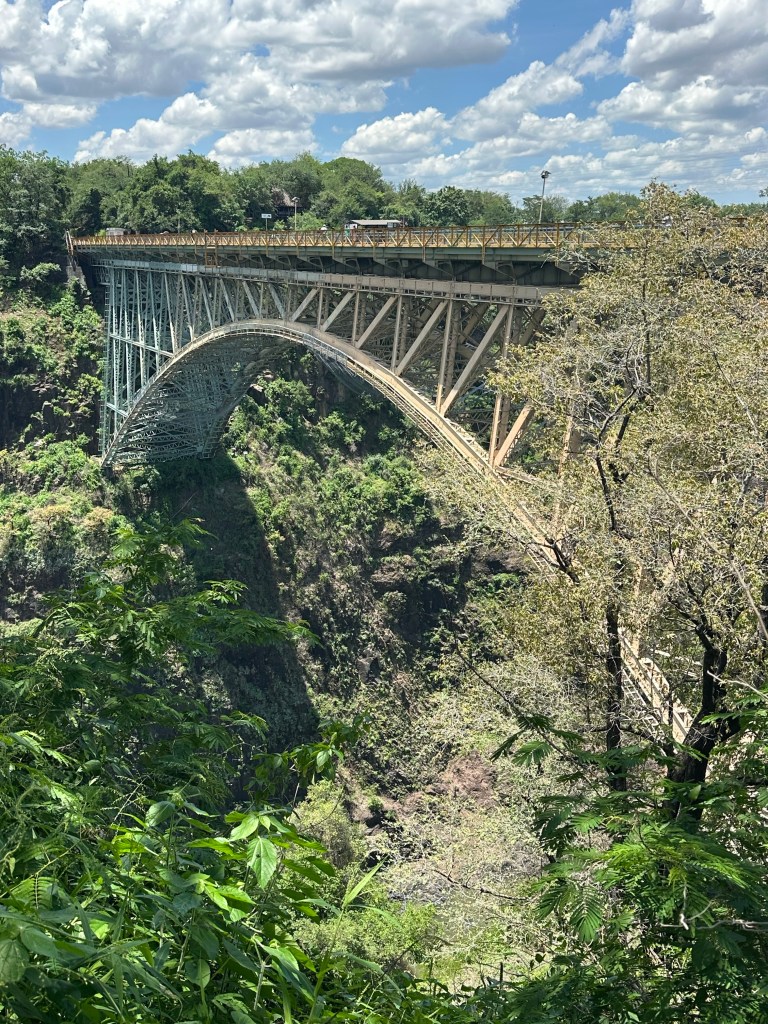 Our first lodge in Botswana was only a 20 minute drive from the border with Zimbabwe, one hour from Victoria Falls. The border crossing is very close to the world’s only quadripoint where Botswana, Namibia, Zimbabwe and Zambia all meet – some locals refer to it as BoNaZaZi. We could see Namibia from our lodge and during our trip to Victoria Falls we walked across the bridge to Zambia. This could be done on a “day pass” used by locals for shopping/trade and tourists to avoid the need to pay for a second Zimbabwe visa.