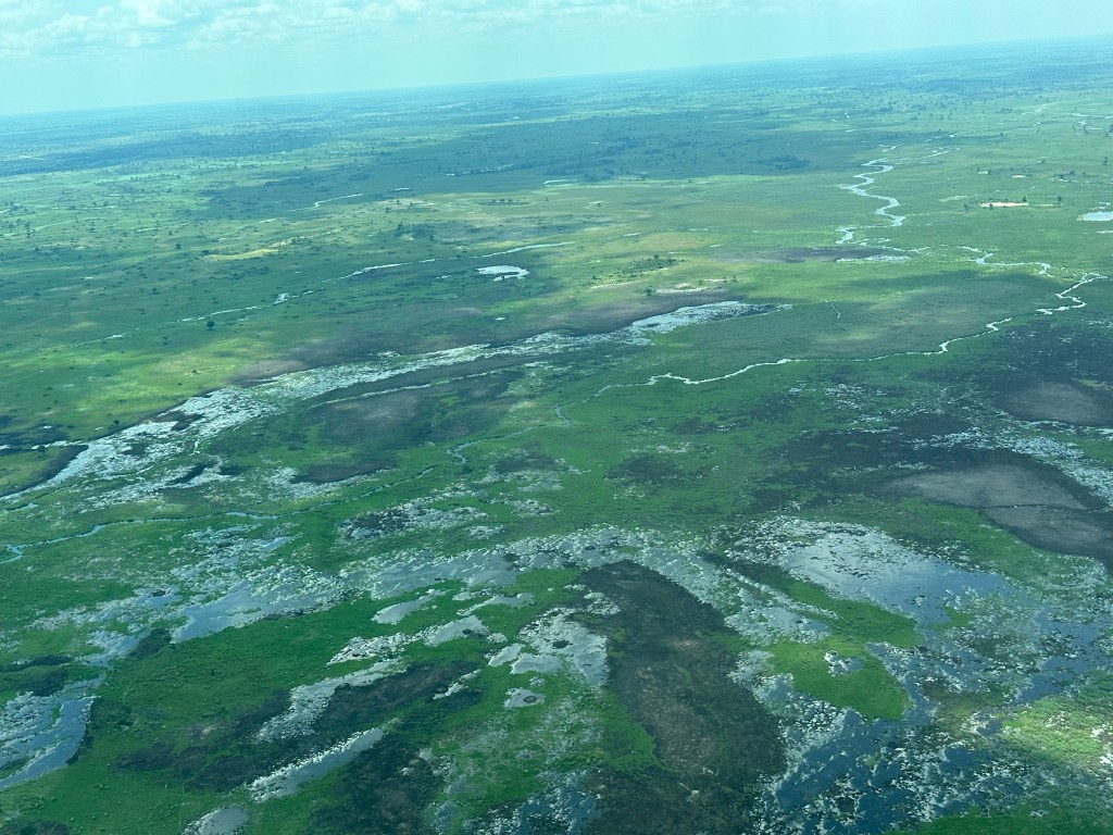 The nature of the geography is such that many lodges are best reached by air as they are on “islands” surrounded by water and marshes. Flights between islands might only be 10 minutes long with the schedule being determined the day before, depending on arrivals/departures from the logdes. Our first flight had five stops, of which ours was the third. There are dirt roads in the region, but the land distances are not indicative of the time it would take nor the feasibility at a particualr time of year.