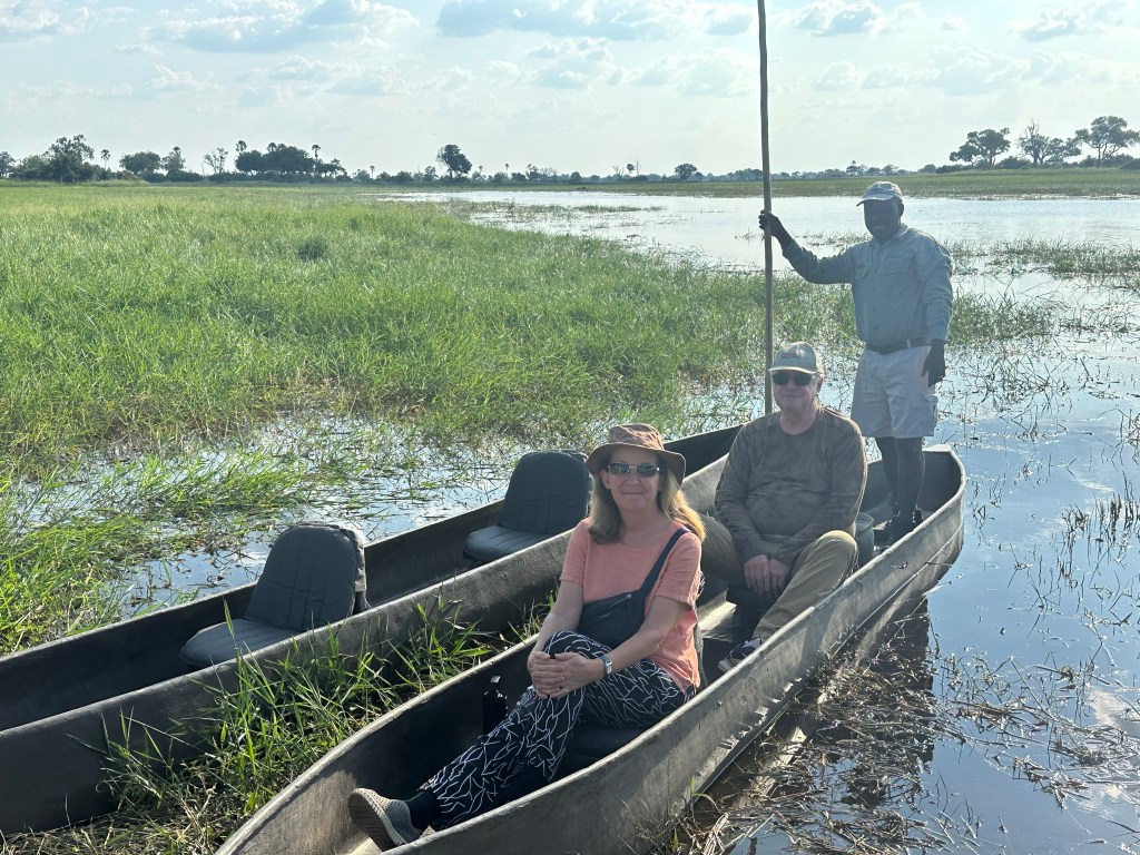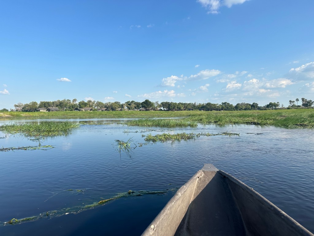 The traditional mode of transport is the mokoro, a canoe dug out from a tree trunk and propelled through the shallow water and vegitation using a pole. The ones used by the lodges are made of fibreglass to prevent unnecessary tree felling in the area.