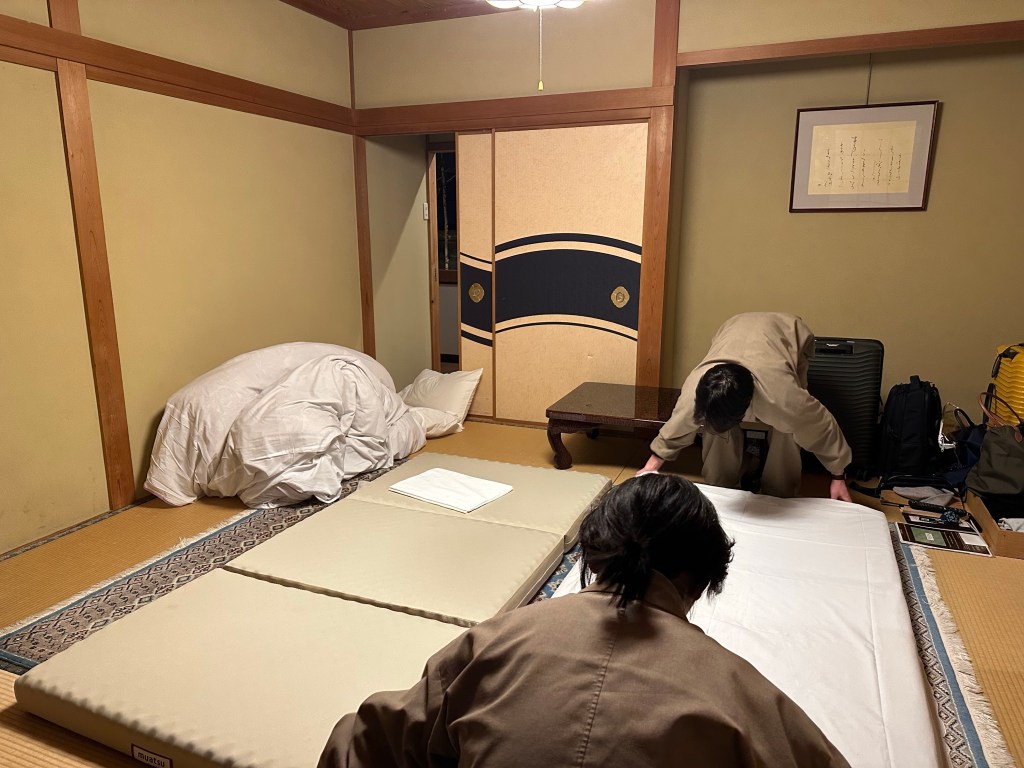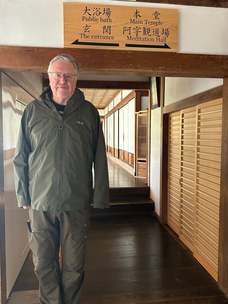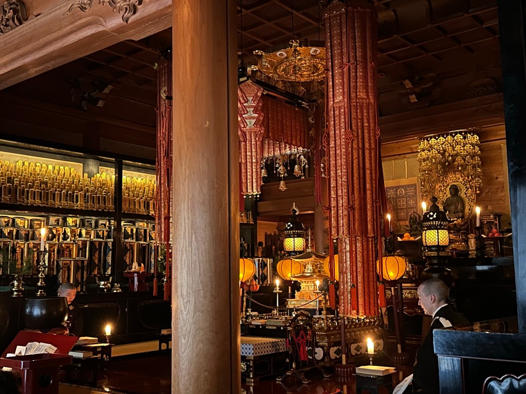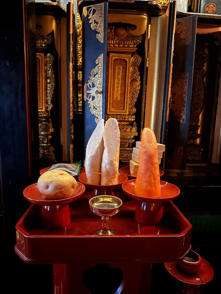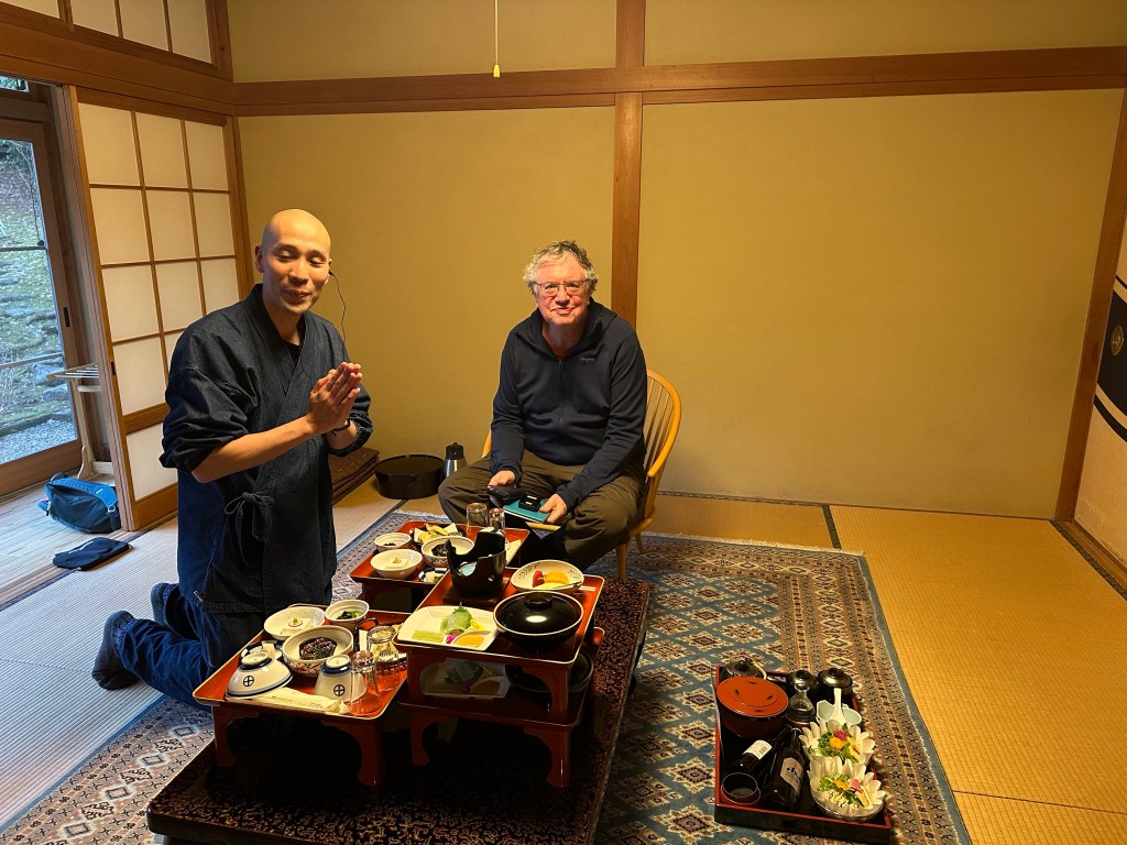 Eko-In Temple, our home for two nights, is one of the 51 temples in Koyasan Lodging. The rooms are simple and each night the staff make up futon beds. Vegan breakfast and dinner are delivered to your room on stacking trays and served with green tea. Most guests use shared bathrooms, although we had one of a few rooms with a private bathroom.